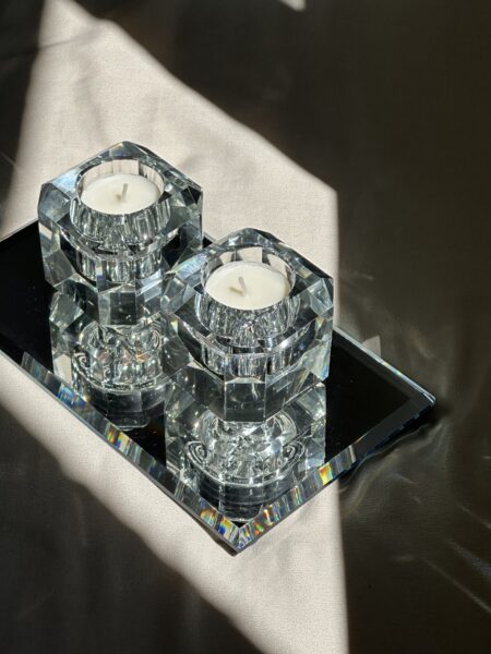 זוג פמוטי קריסטל מדורגים מרובעים , גוון רוז גולד