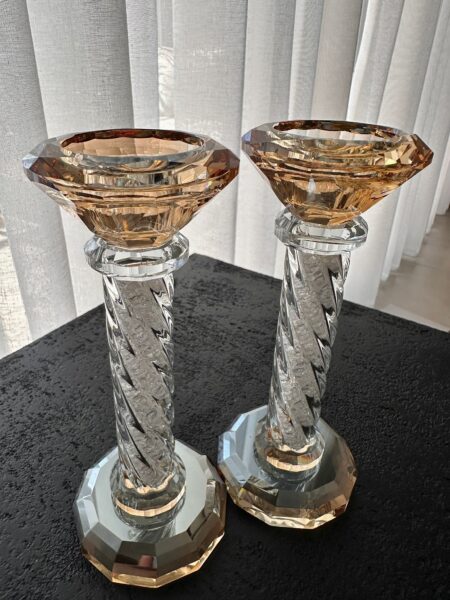 זוג פמוטי קריסטל מהודרים רוז גולד