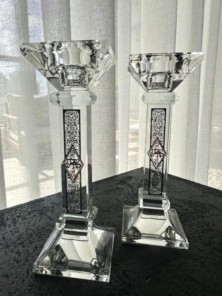 זוג פמוטי קריסטל מדורגים מרובעים , גוון שקוף