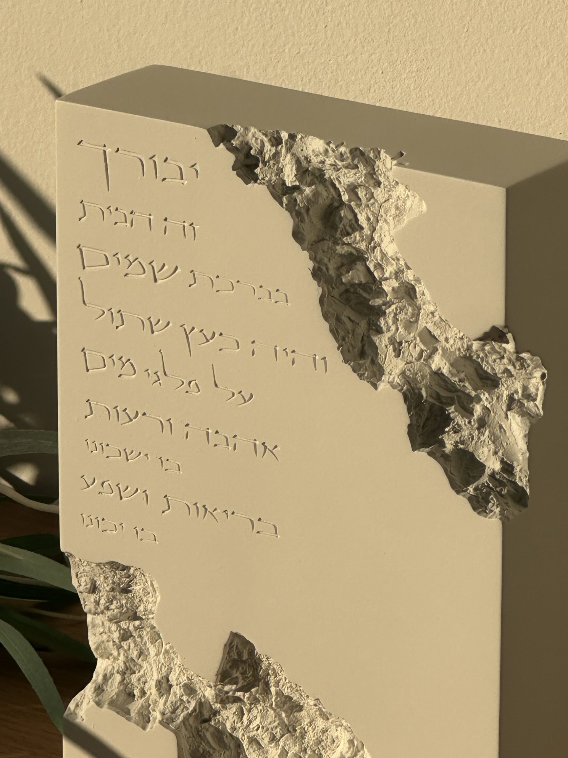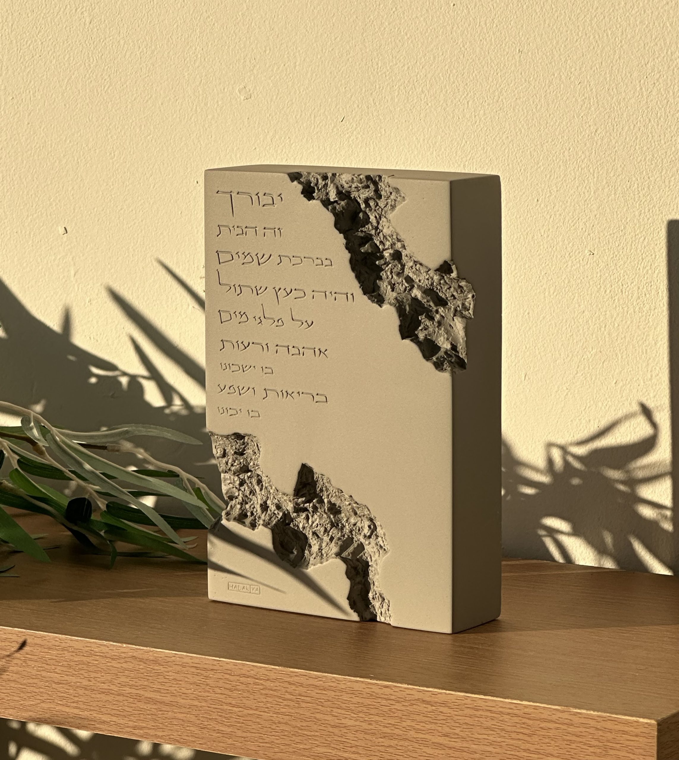 בלוק בטון אפור ״ ברכת הבית ״ יצירה עוצמתית ואלגנטית המשלבת קדושה ויופי !