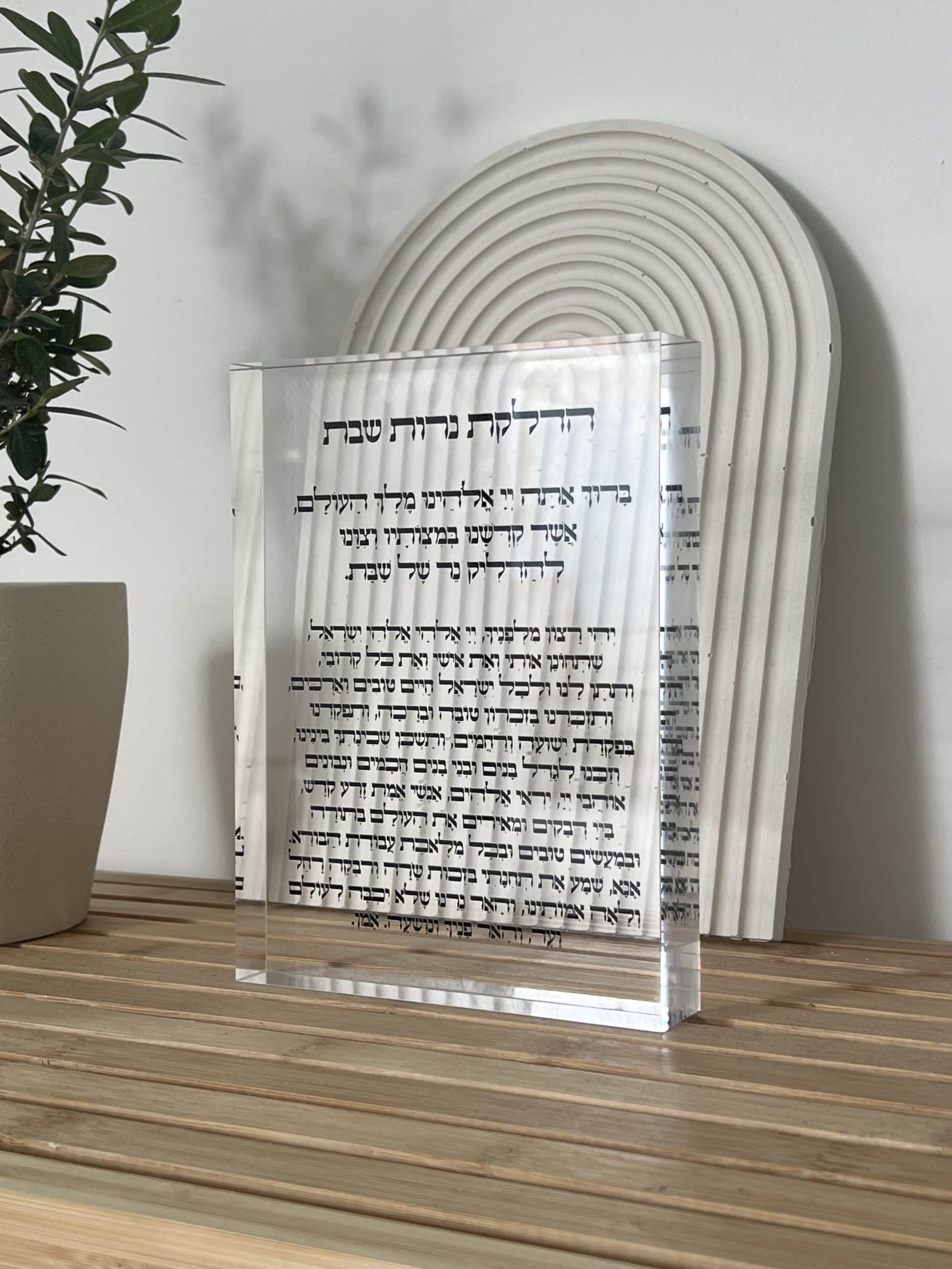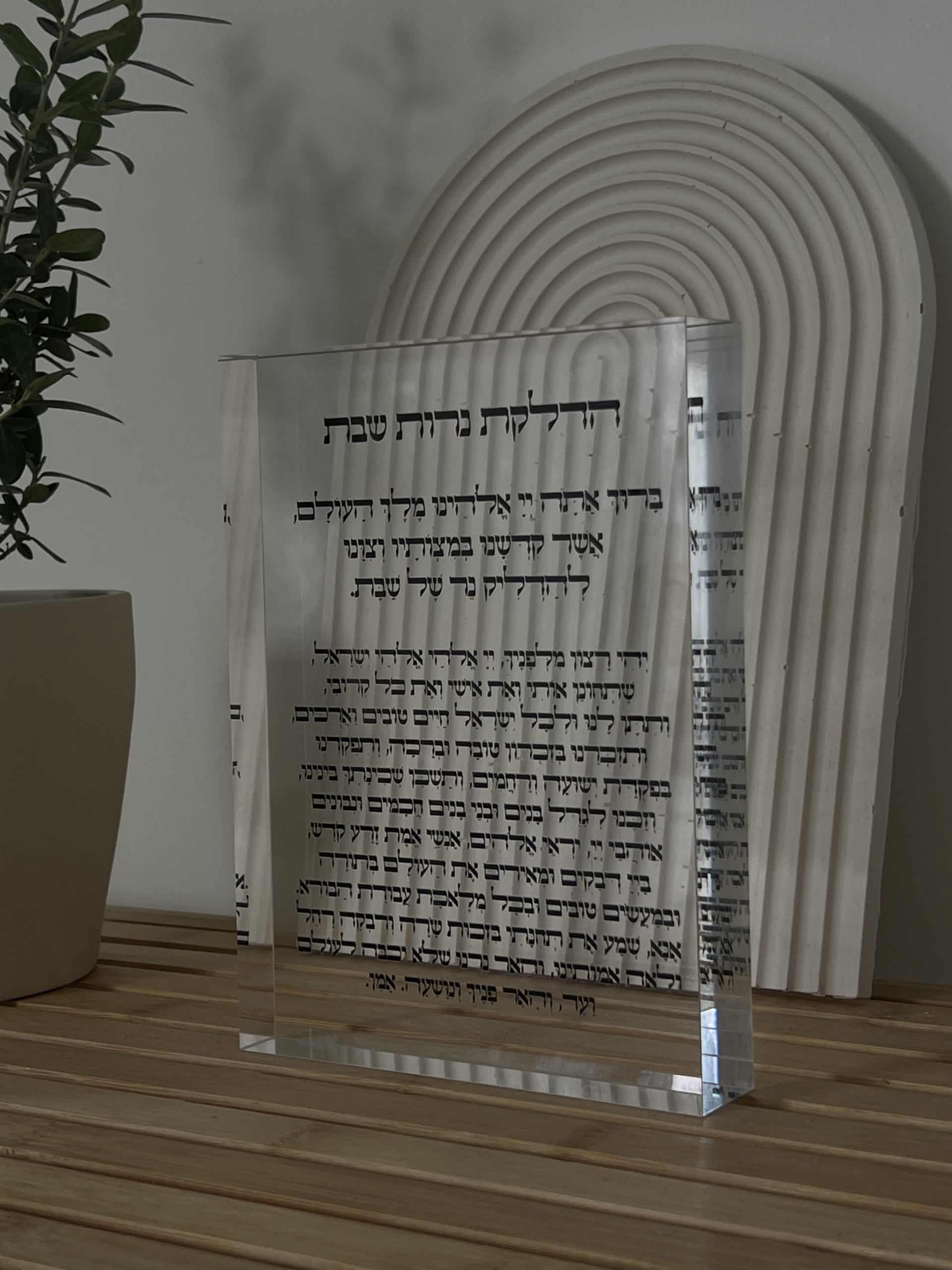 תמונה מזכוכית של הדלקת נרות שבת , אורך 20 ס”מ , רוחב 15 ס”מ , עומק 3 ס”מ .
