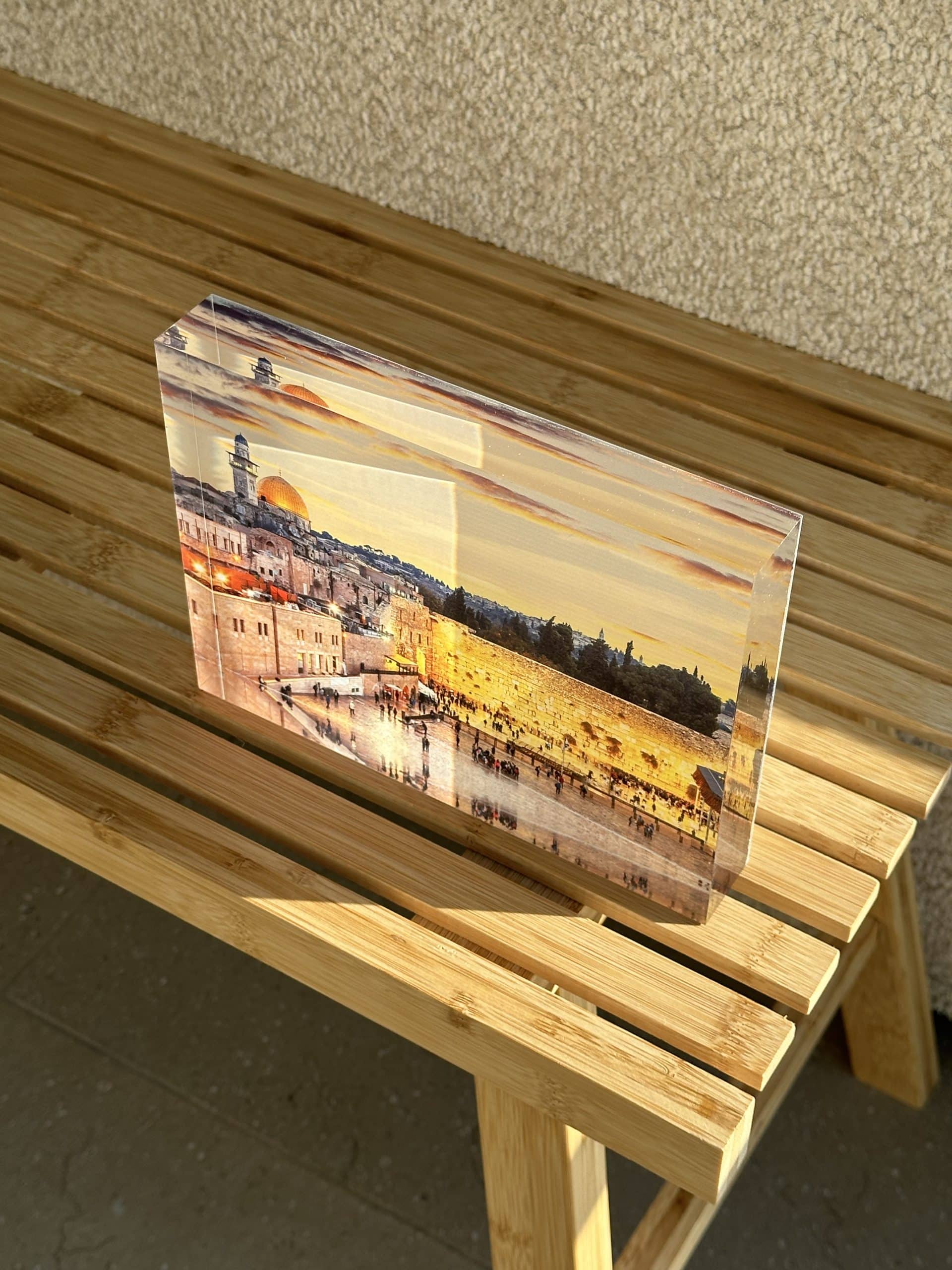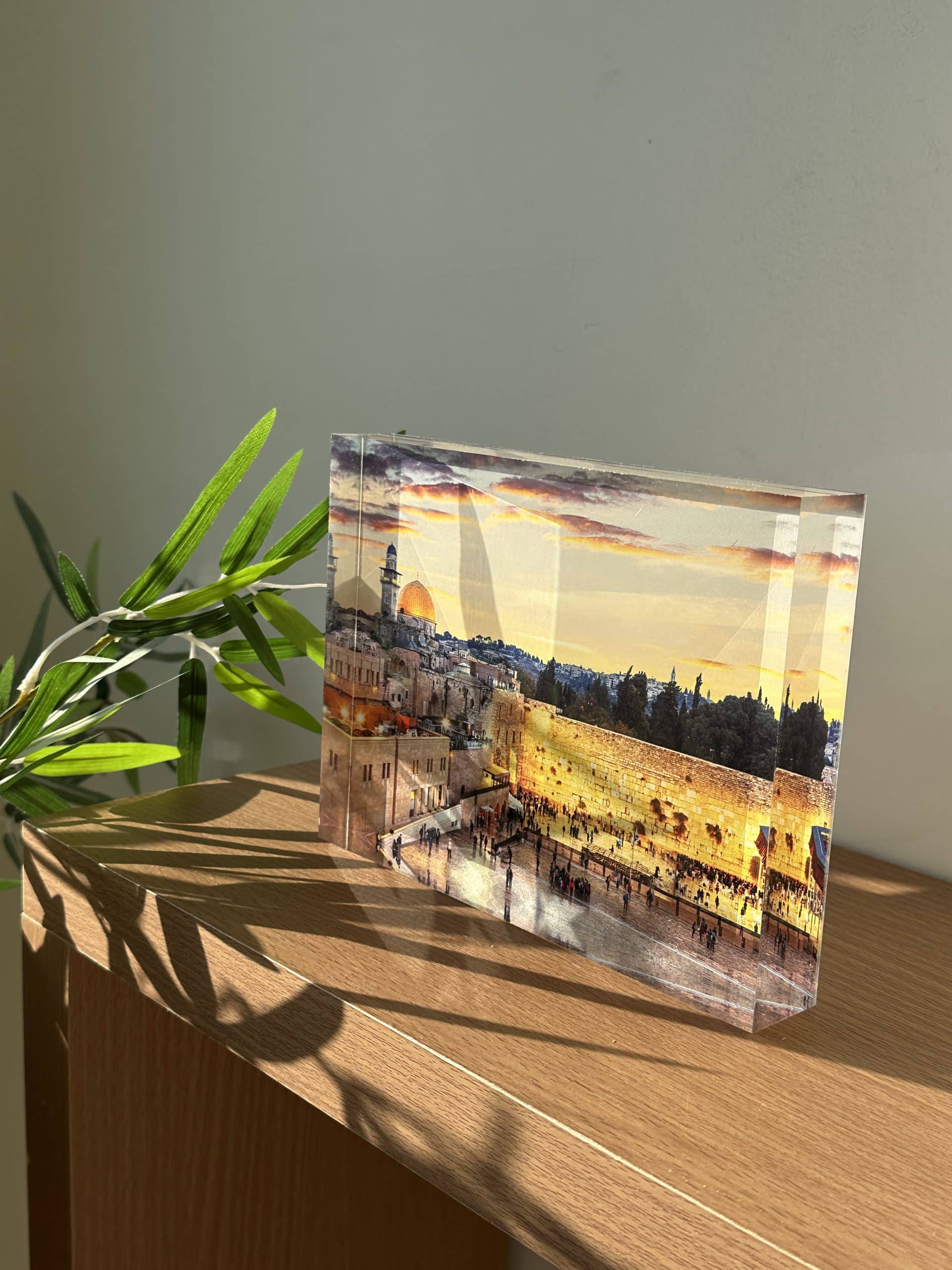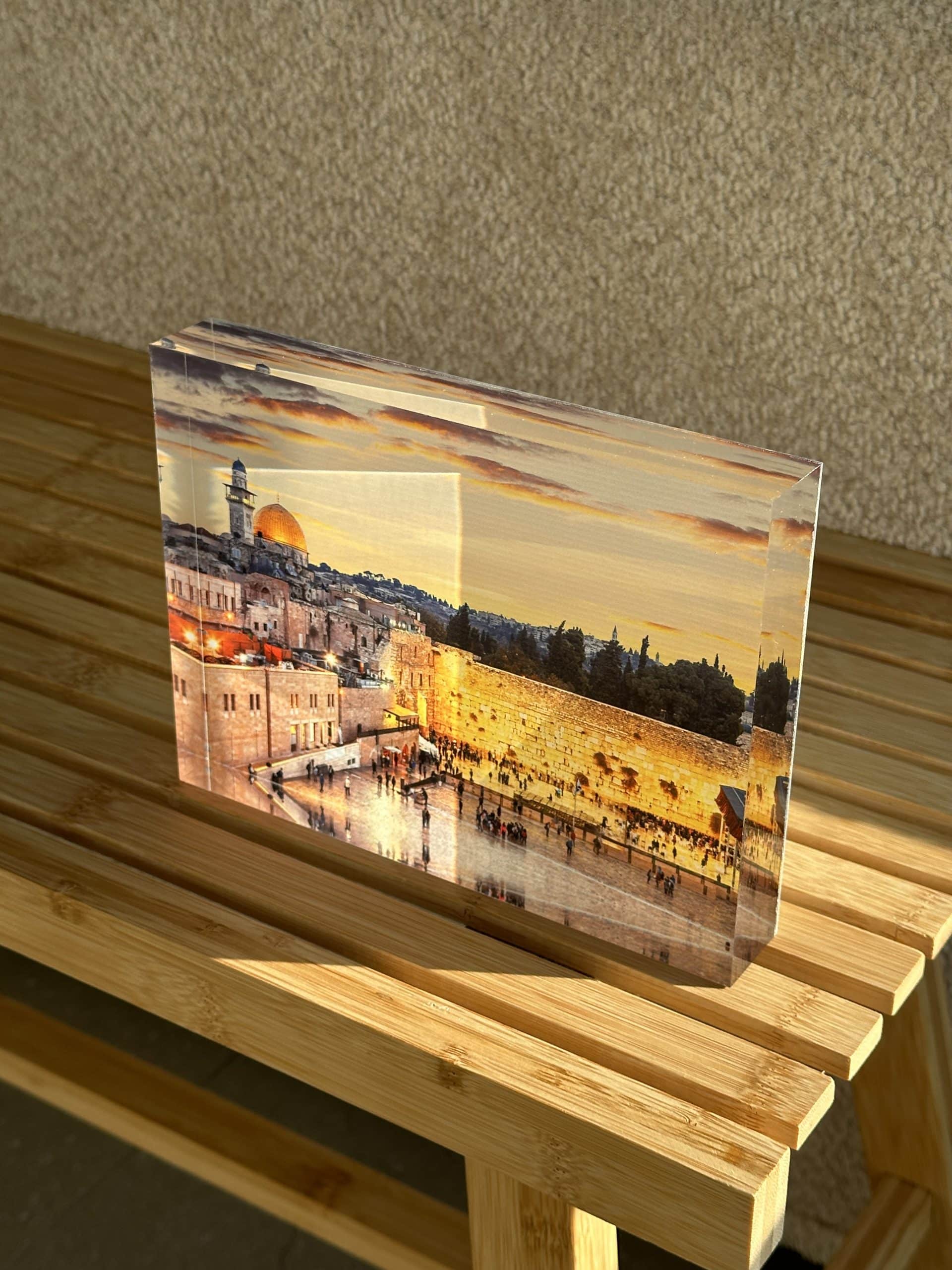 תמונה מזכוכית של הכותל המערבי , אורך 20 ס”מ , רוחב 15 ס”מ , עומק 3 ס”מ .