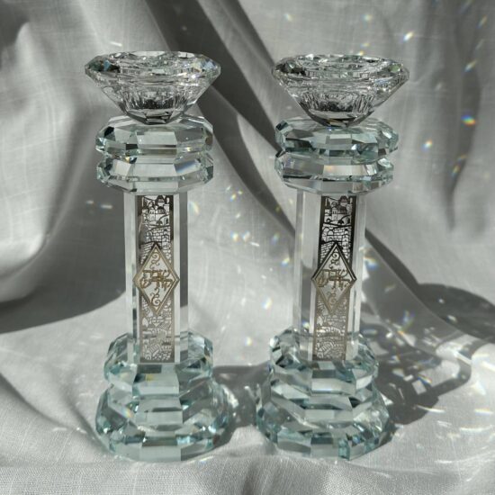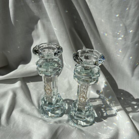 זוג פמוטי קריסטל מדורגים מרובעים , גוון רוז גולד
