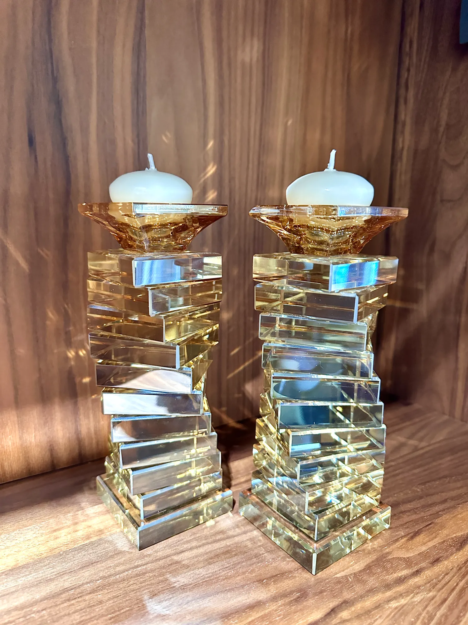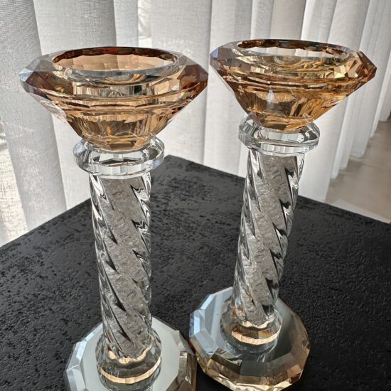 זוג פמוטי קריסטל מדורגים מרובעים , גוון רוז גולד , גובה 19.5 ס”מ .