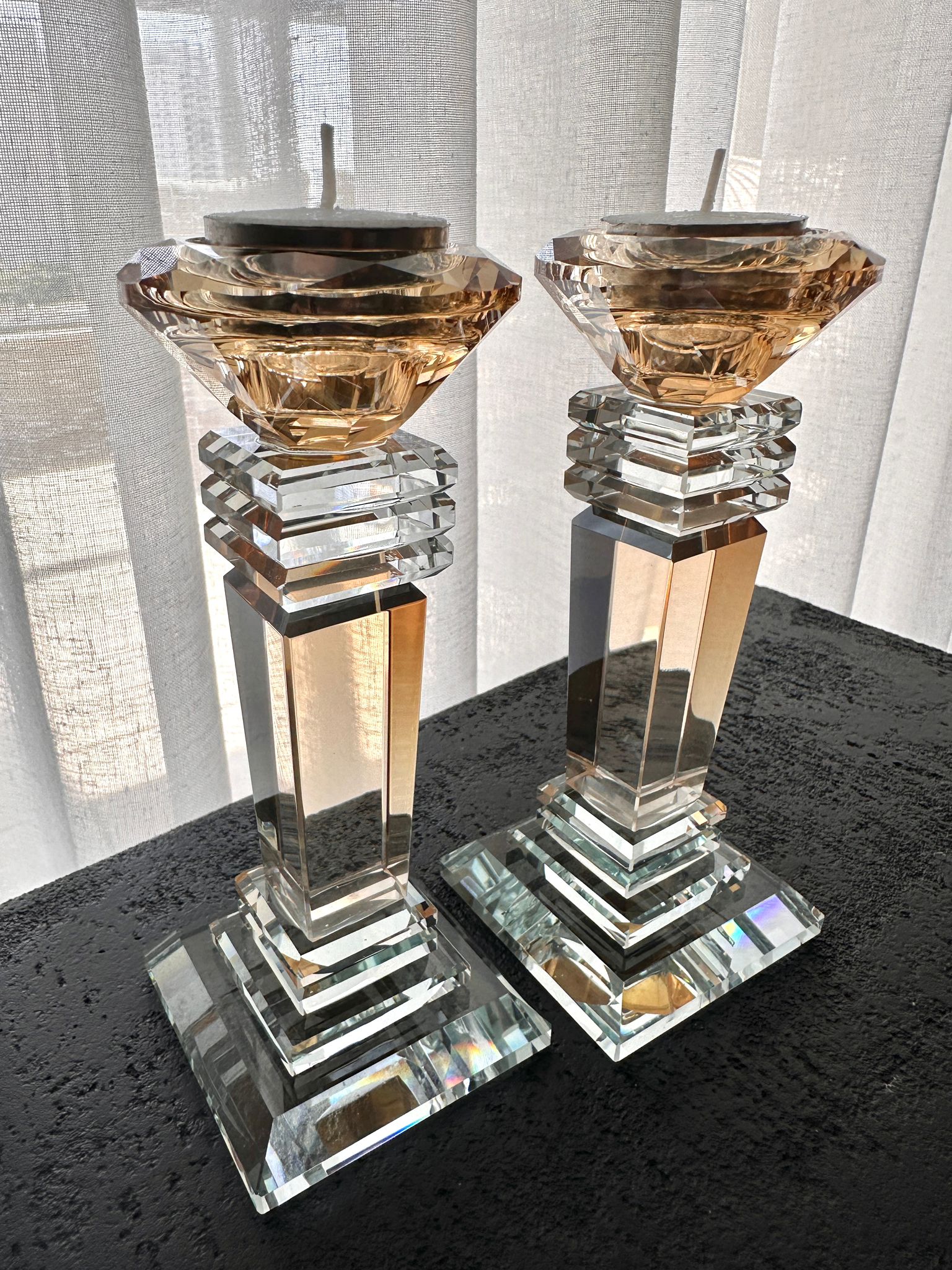 זוג פמוטי קריסטל מהודרים , גוון רוז גולד , גובה 16 ס”מ .