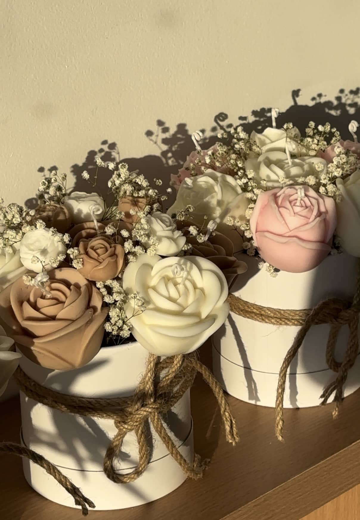 זר פרחים ריחני ומיוחד המגיע עם מגוון פרחים העשויים משעוות סויה עם שילוב של פרחים יבשים.