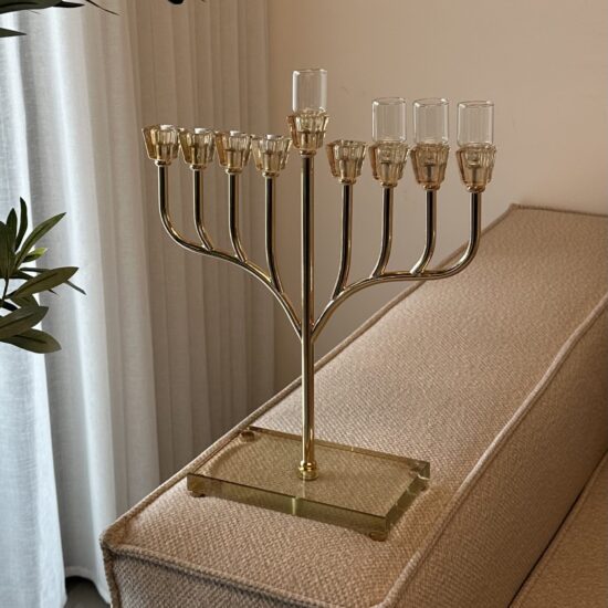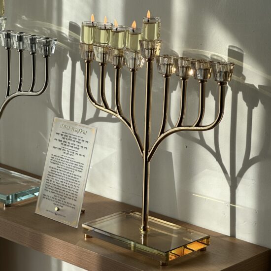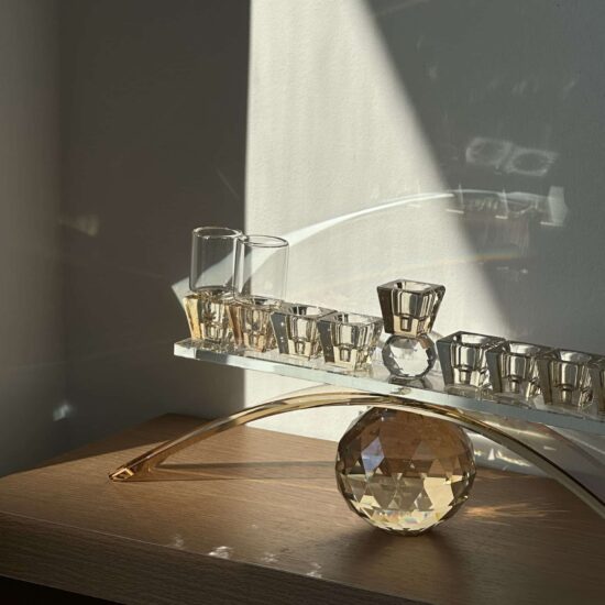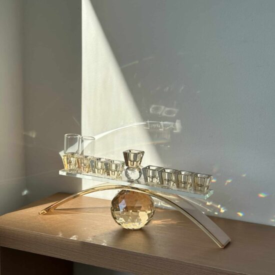 חנוכיה מהודרת דגם יהלום מקריסטל – כסף