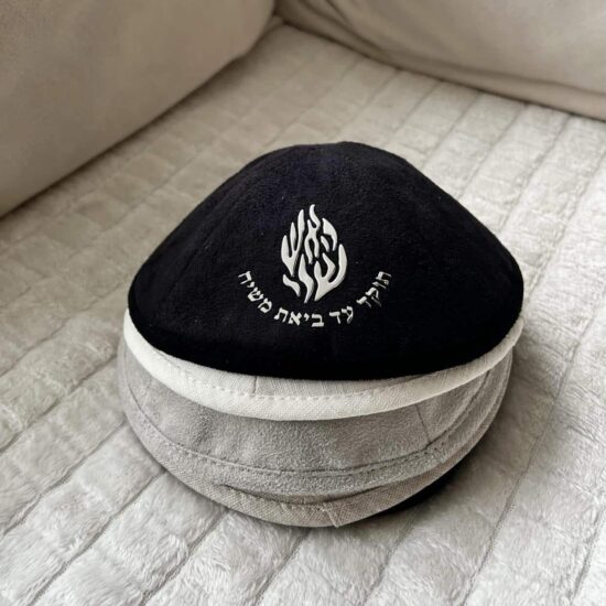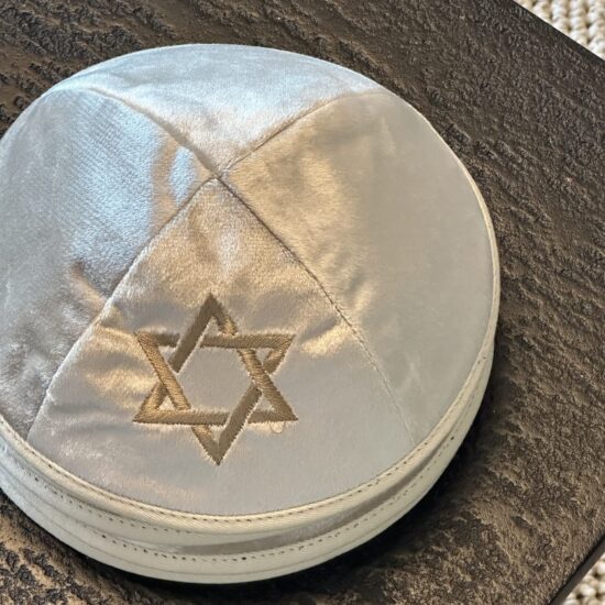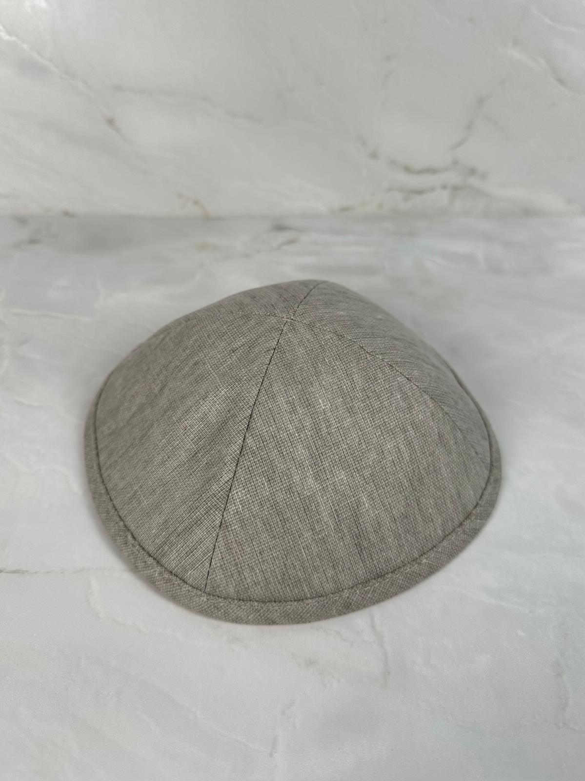 כיפה מהודרת משי פשתן , גוון אפור בהיר , 19 ס”מ .