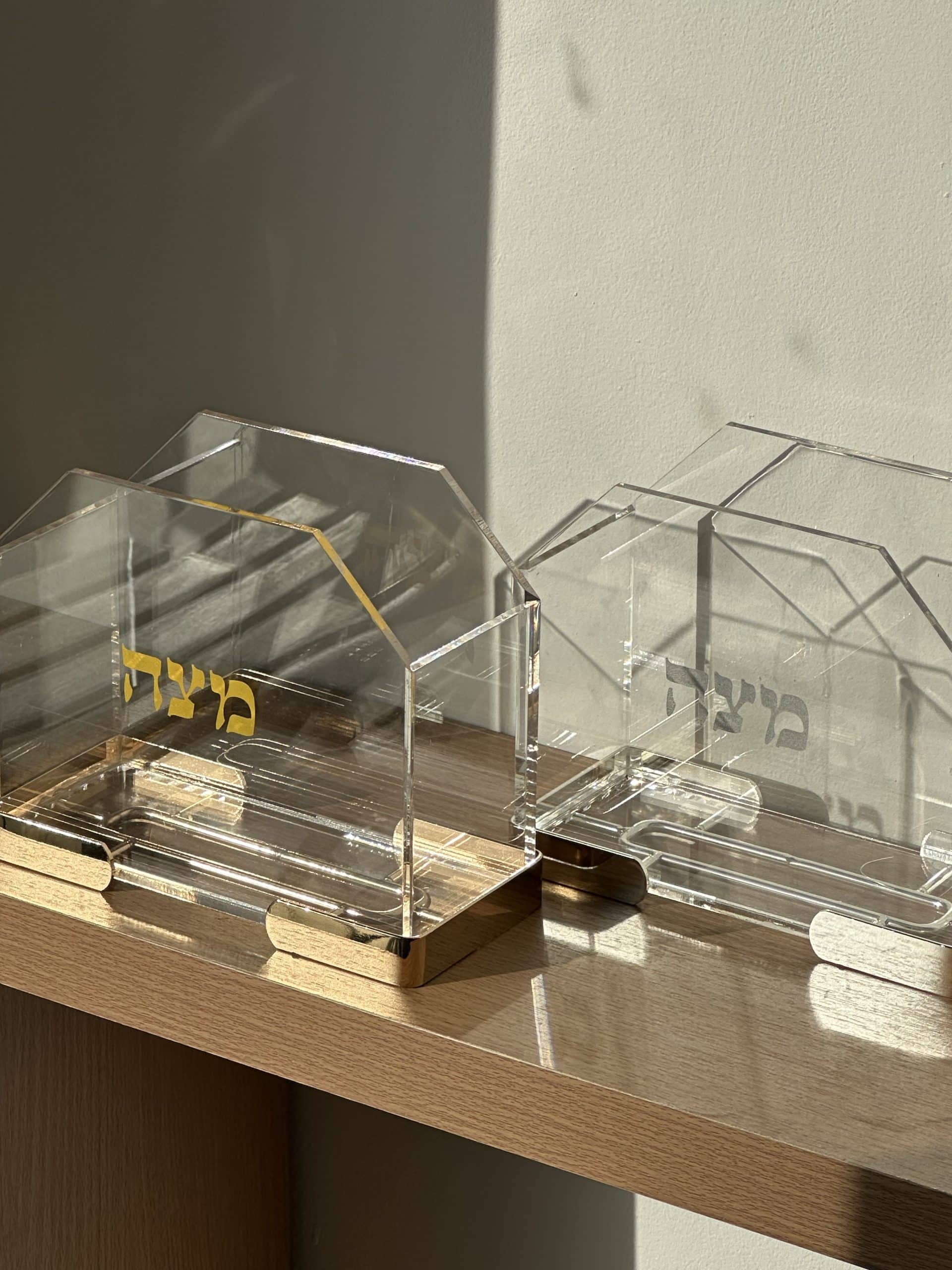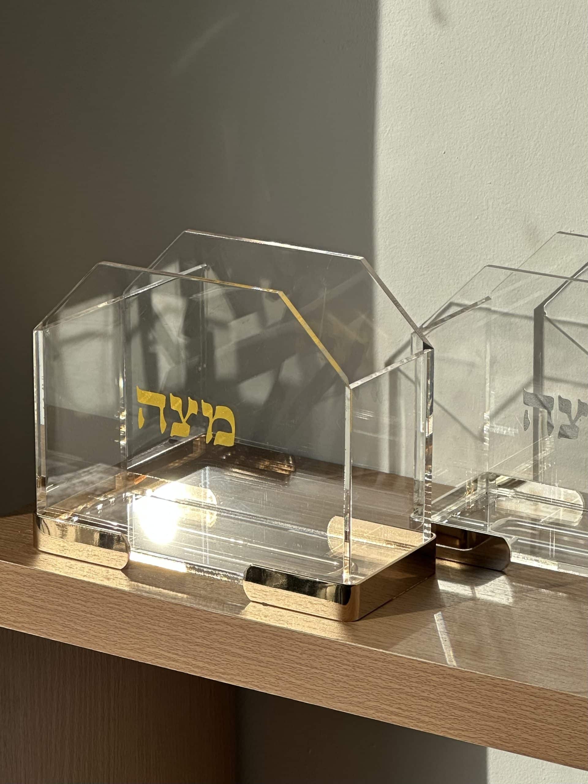 מעמד למצה דגם פתוח , מסגרת זהב , גובה 20 ס”מ .