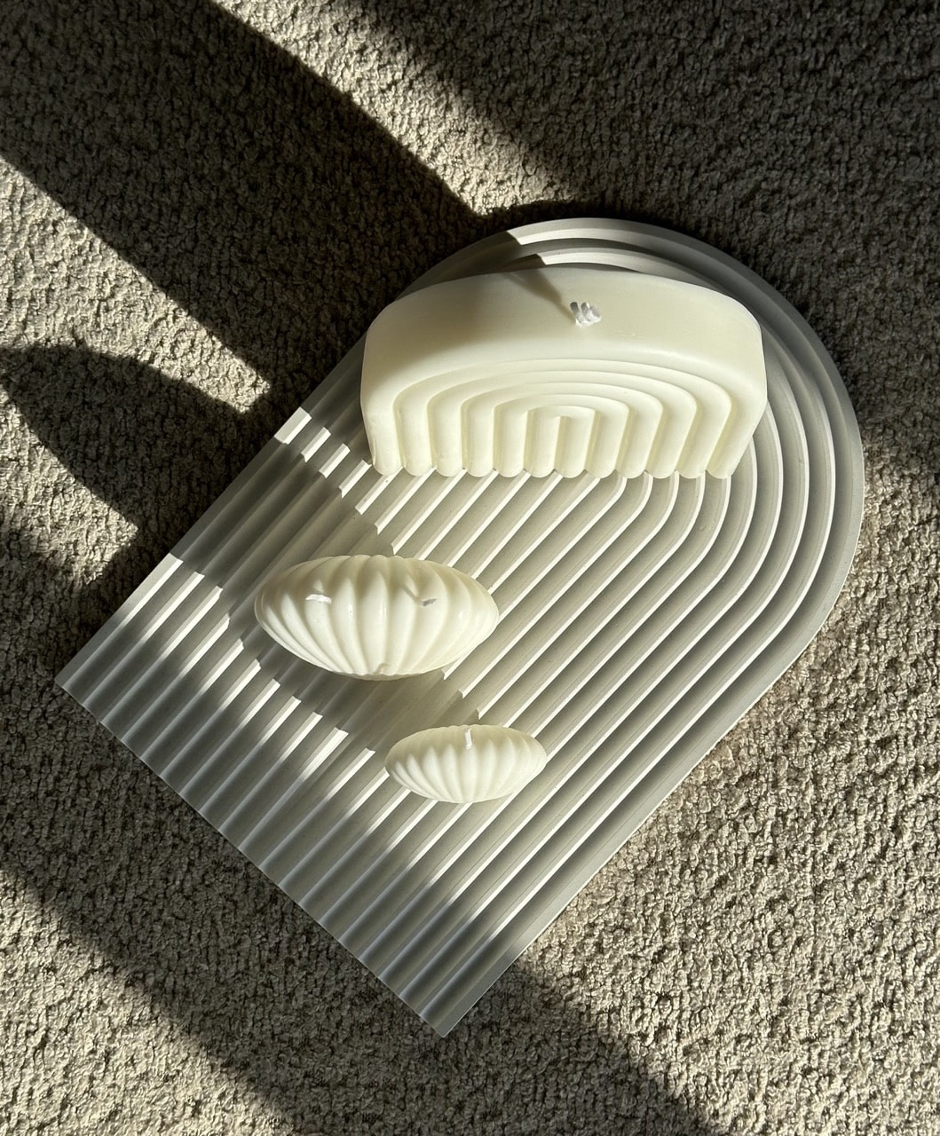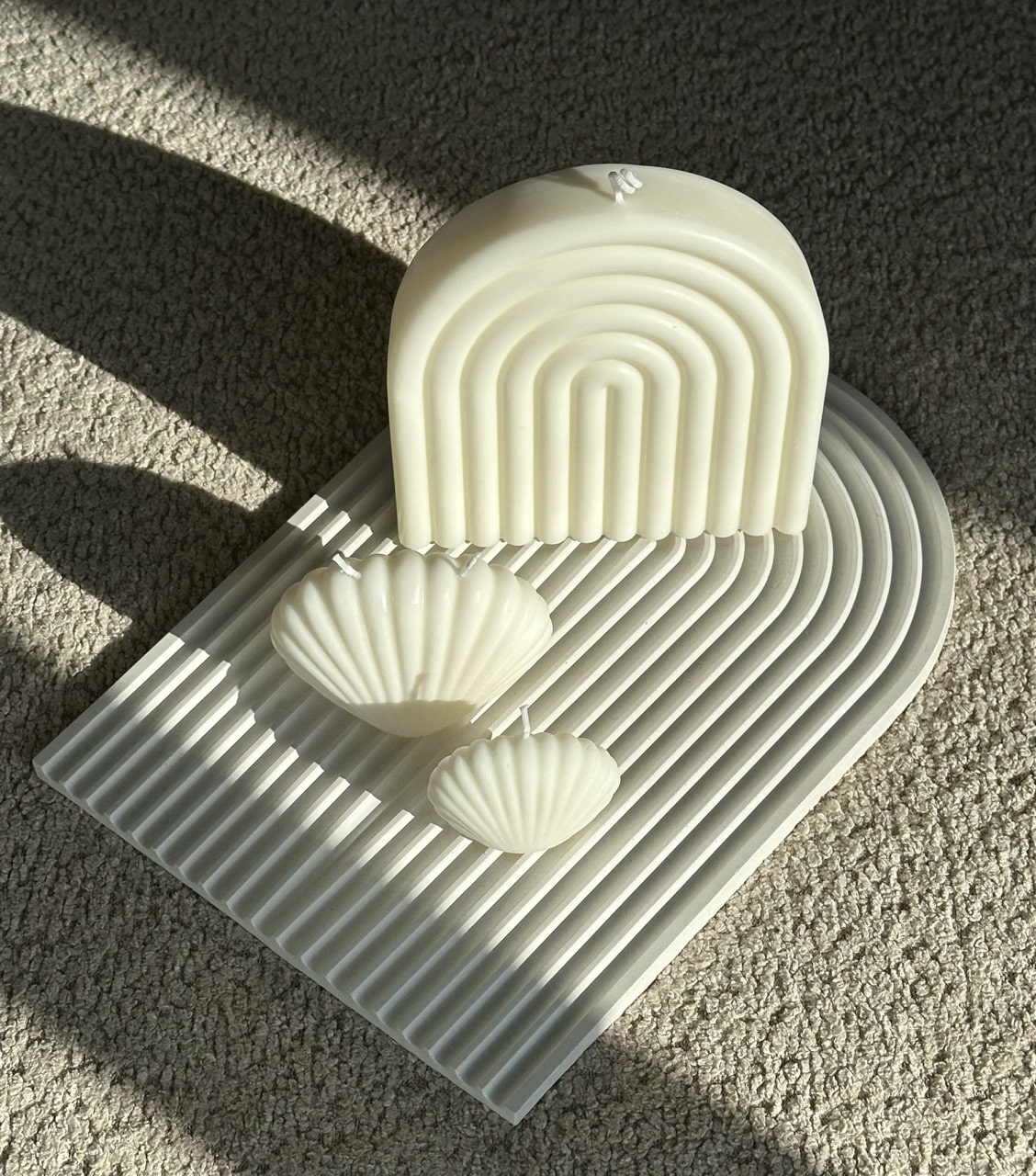 - נר קשת בגוון לבן , גובה 15 ס״מ , רוחב 15 ס״מ .