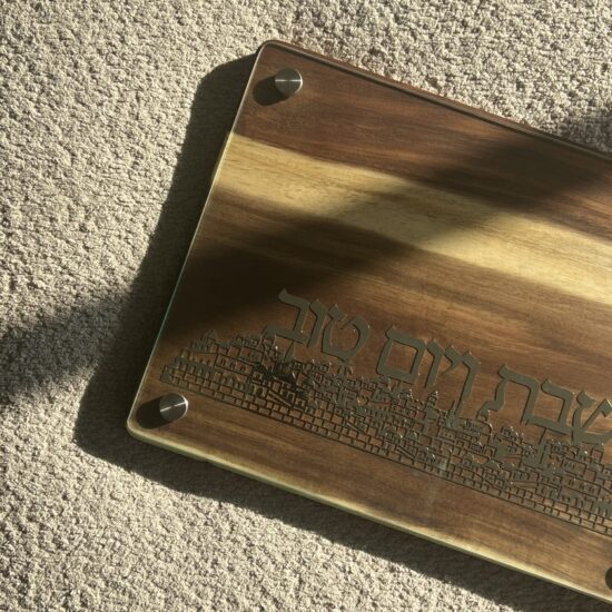 מגש חלה מהודר דגם שבת מבטון , אורך 30 ס״מ, רוחב 40 ס״מ.