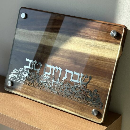 מגש חלה מהודר דגם שבת מבטון , אורך 30 ס״מ, רוחב 40 ס״מ.