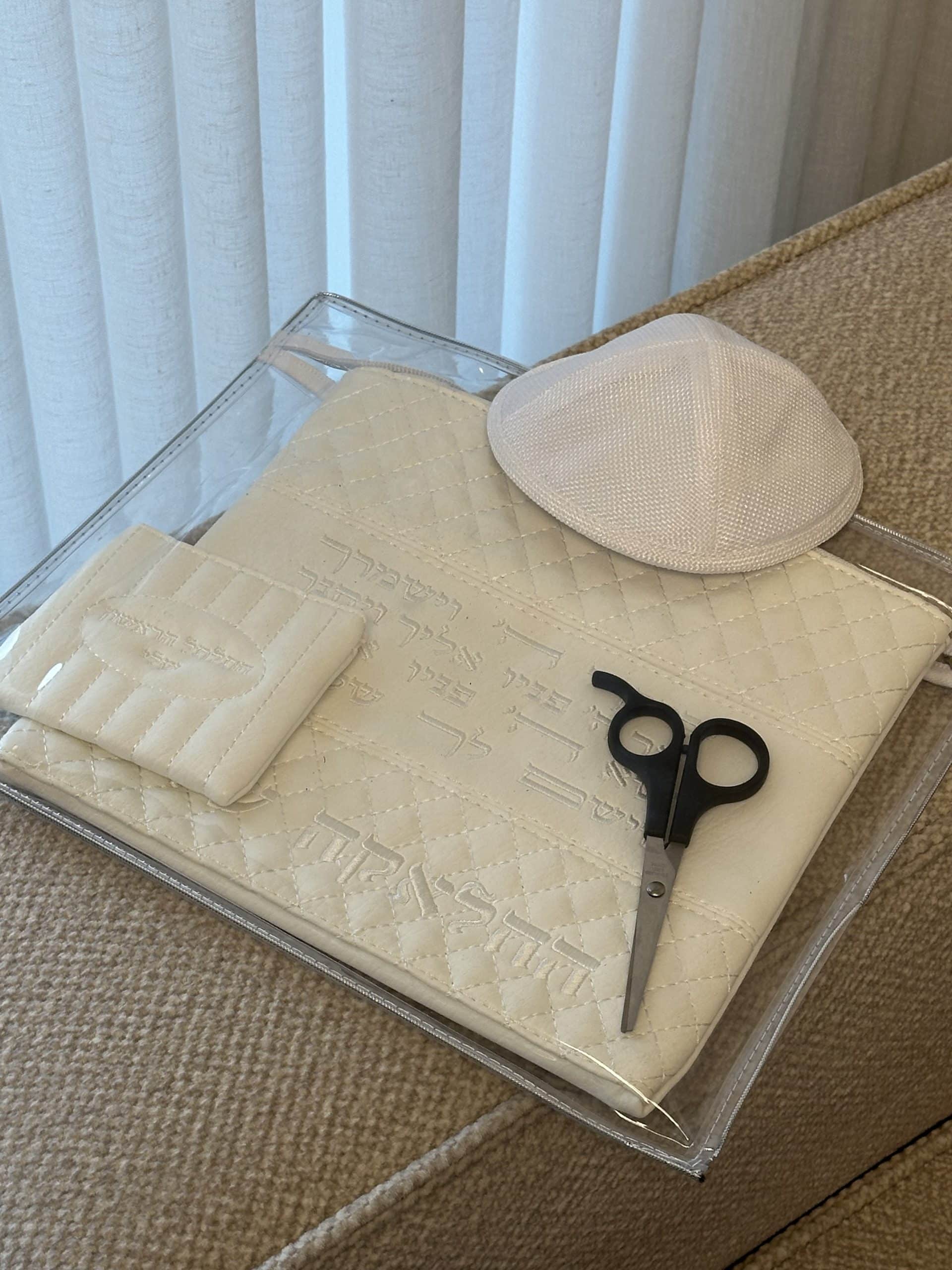 סט החלאקה שלי , גוון לבן , מכיל נרתיק לתלתל , מספריים וכיפה