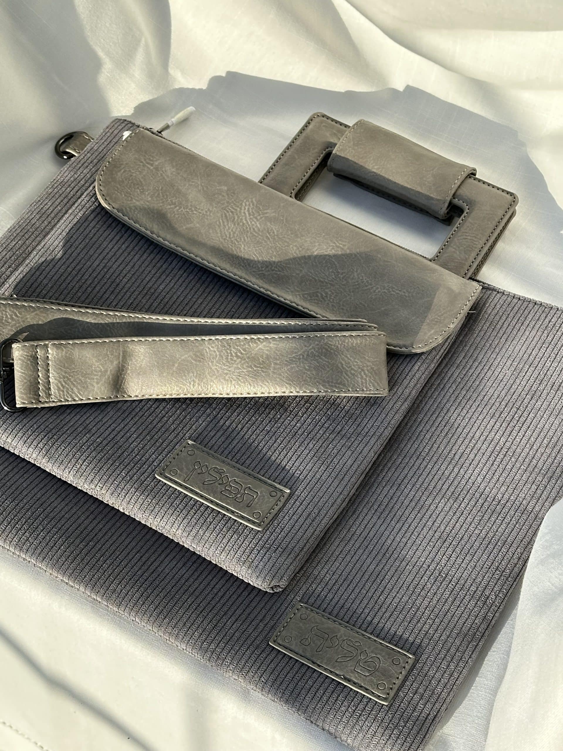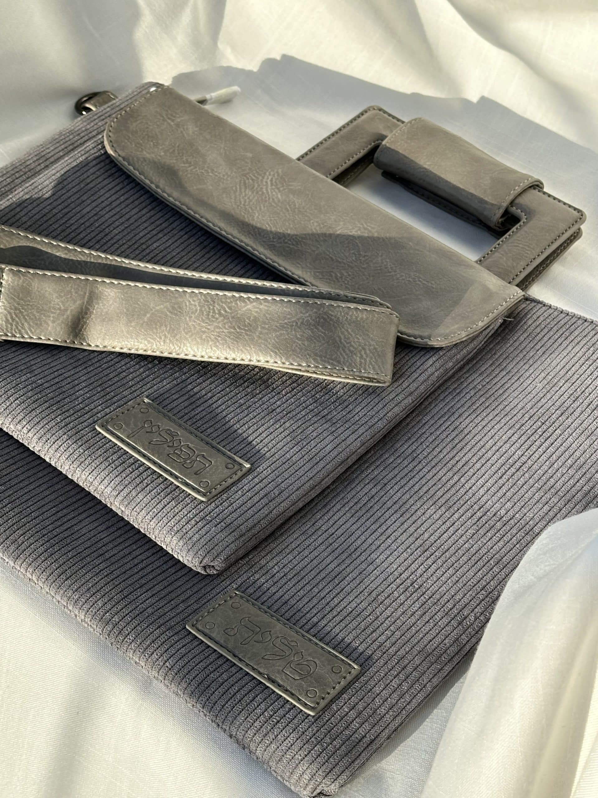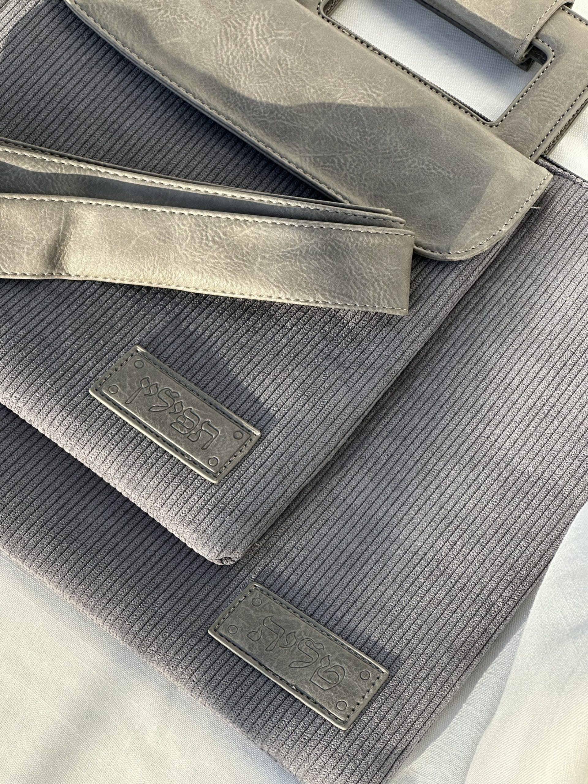 סט טלית ותפילין קורדרוי אפור , אורך 38 ס”מ , רוחב 31 ס”מ .