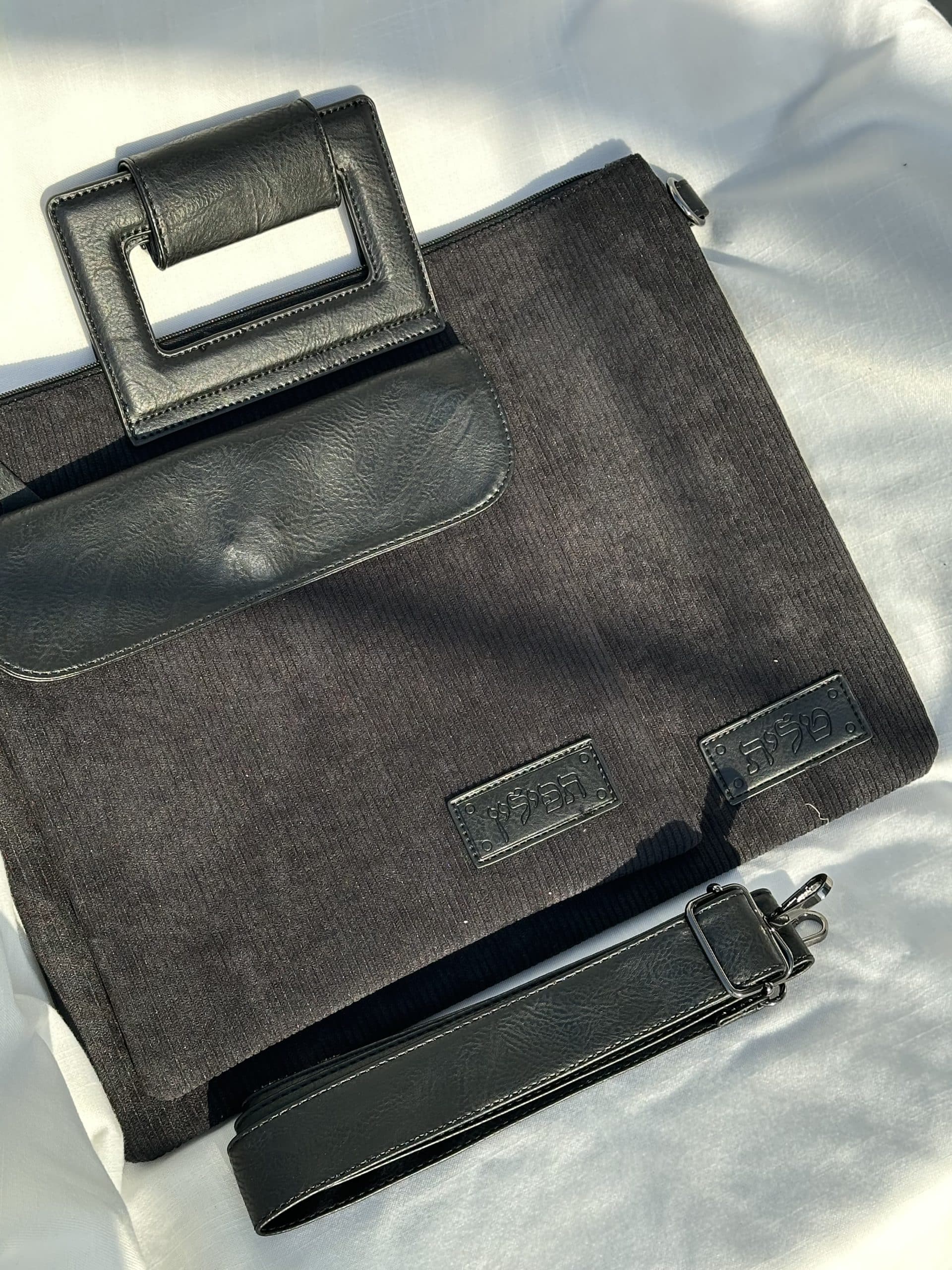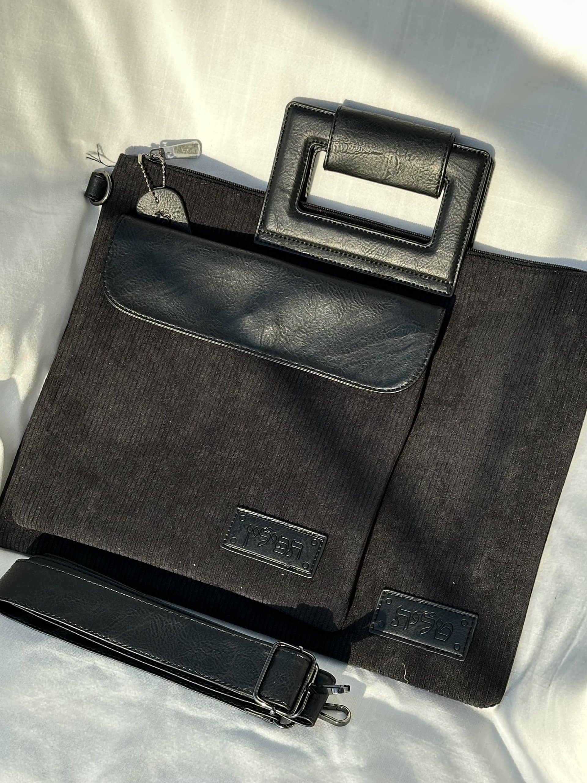 סט טלית ותפילין קורדרוי שחור , אורך 38 ס”מ , רוחב 31 ס”מ .