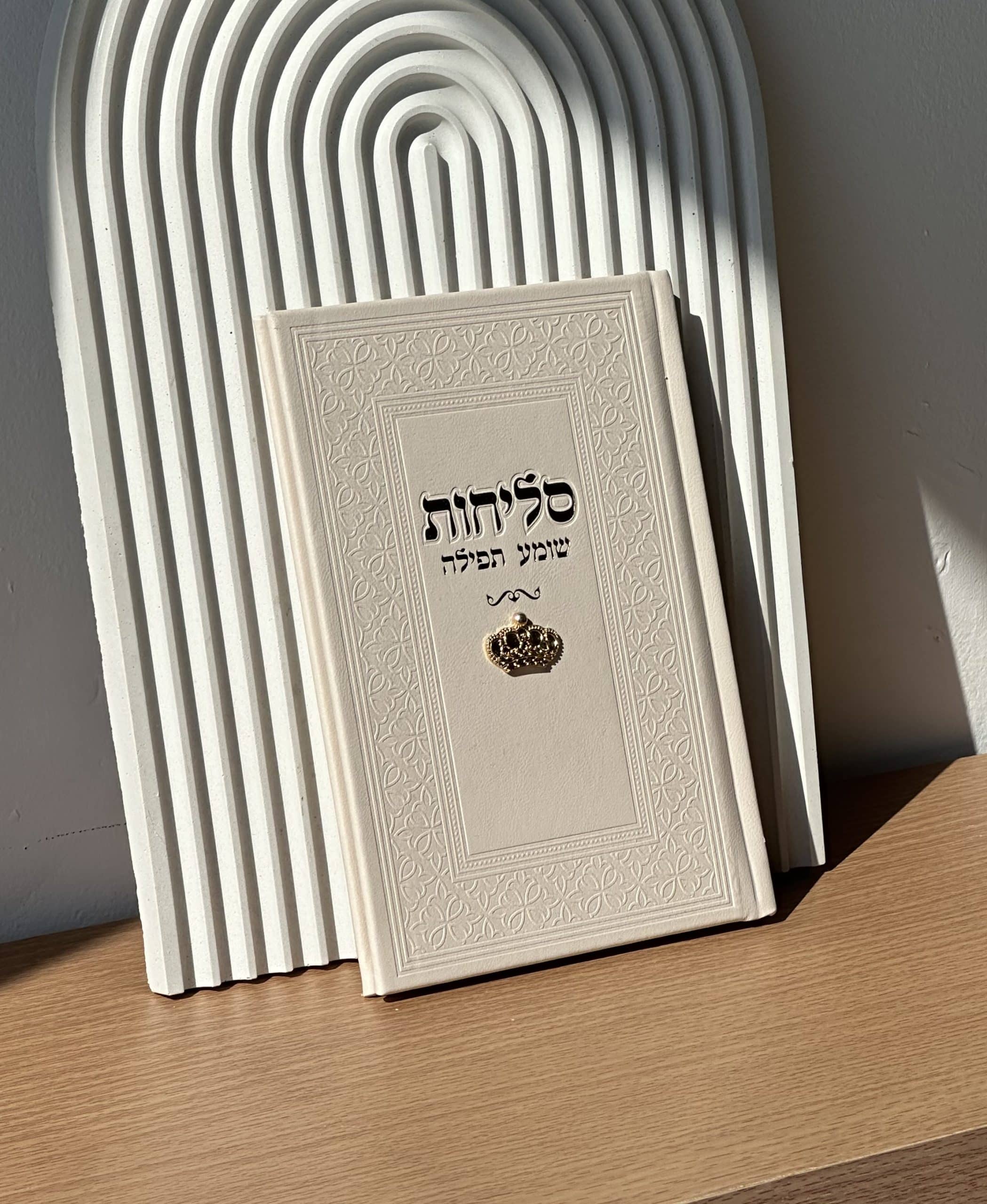 סידור סליחות ” שומע תפילה ” , גוון שמנת זהב , גובה 17.5 ס”מ , רוחב 12.5 ס”מ .
