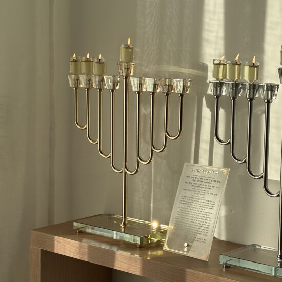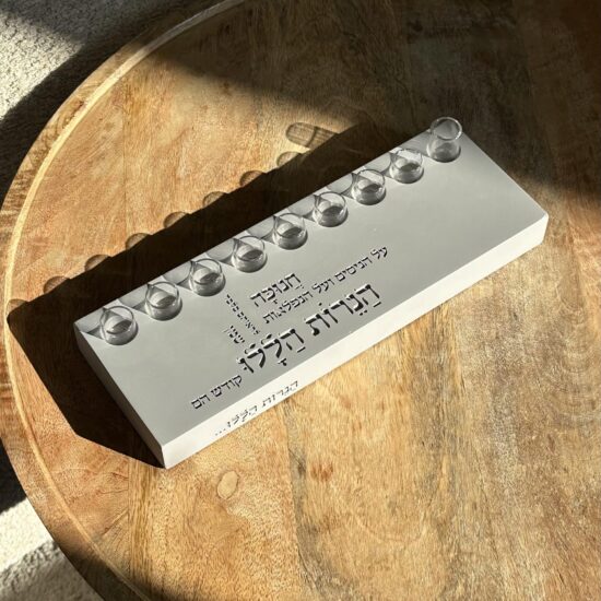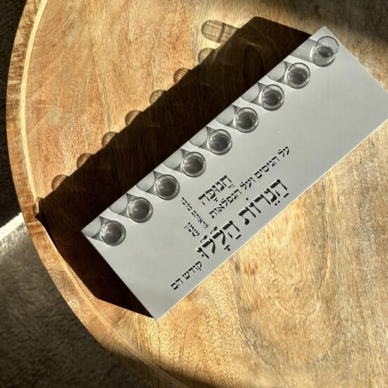 חנוכיה שטוחה דגם טופוגרפיה – לבן
