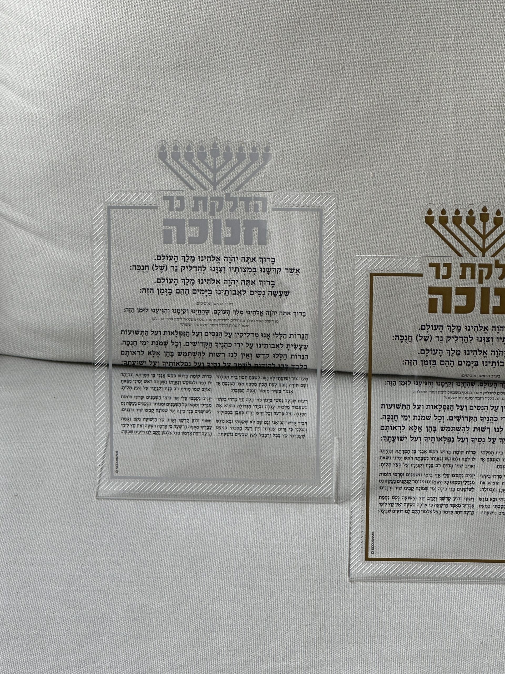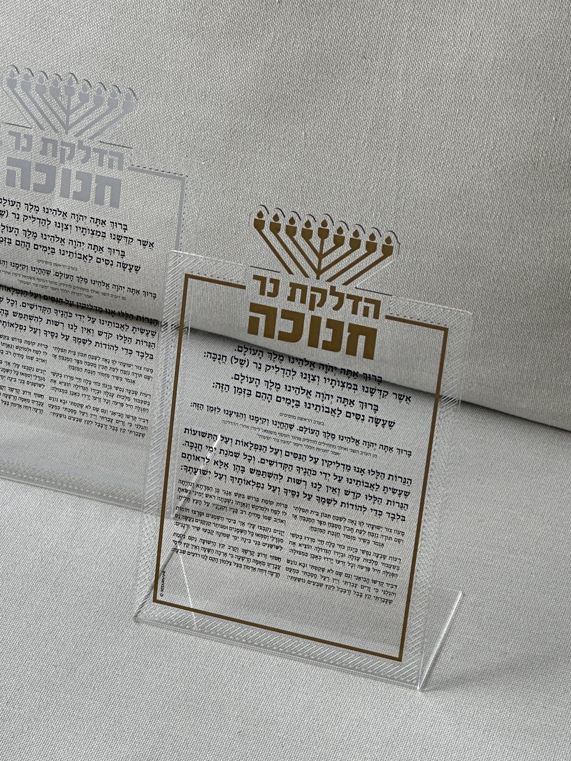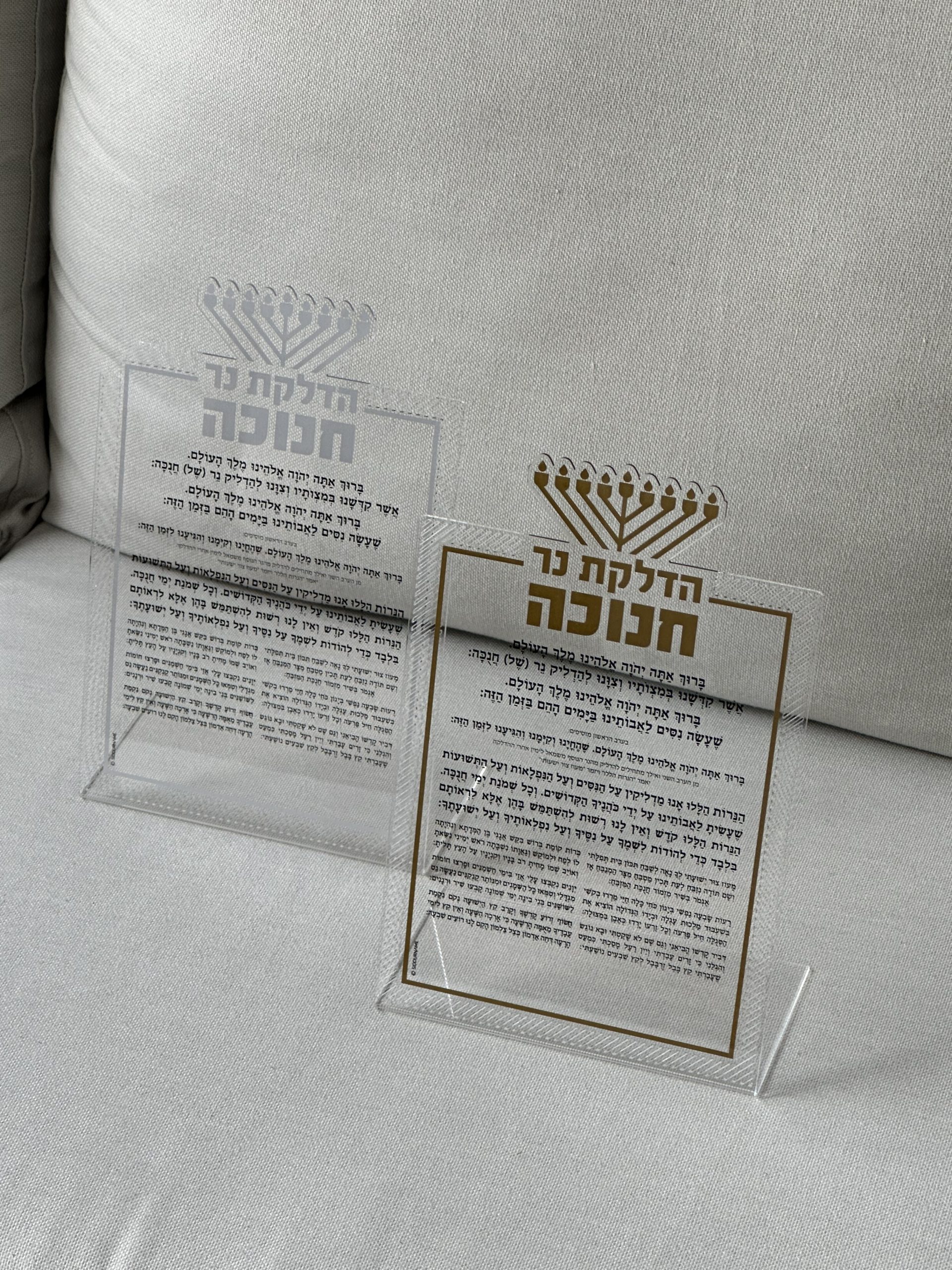 ברכון הדלקת נרות חנוכה מהודר – אקריליק , קיים בגוון כסף ובגוון זהב , 25 ס״מ .