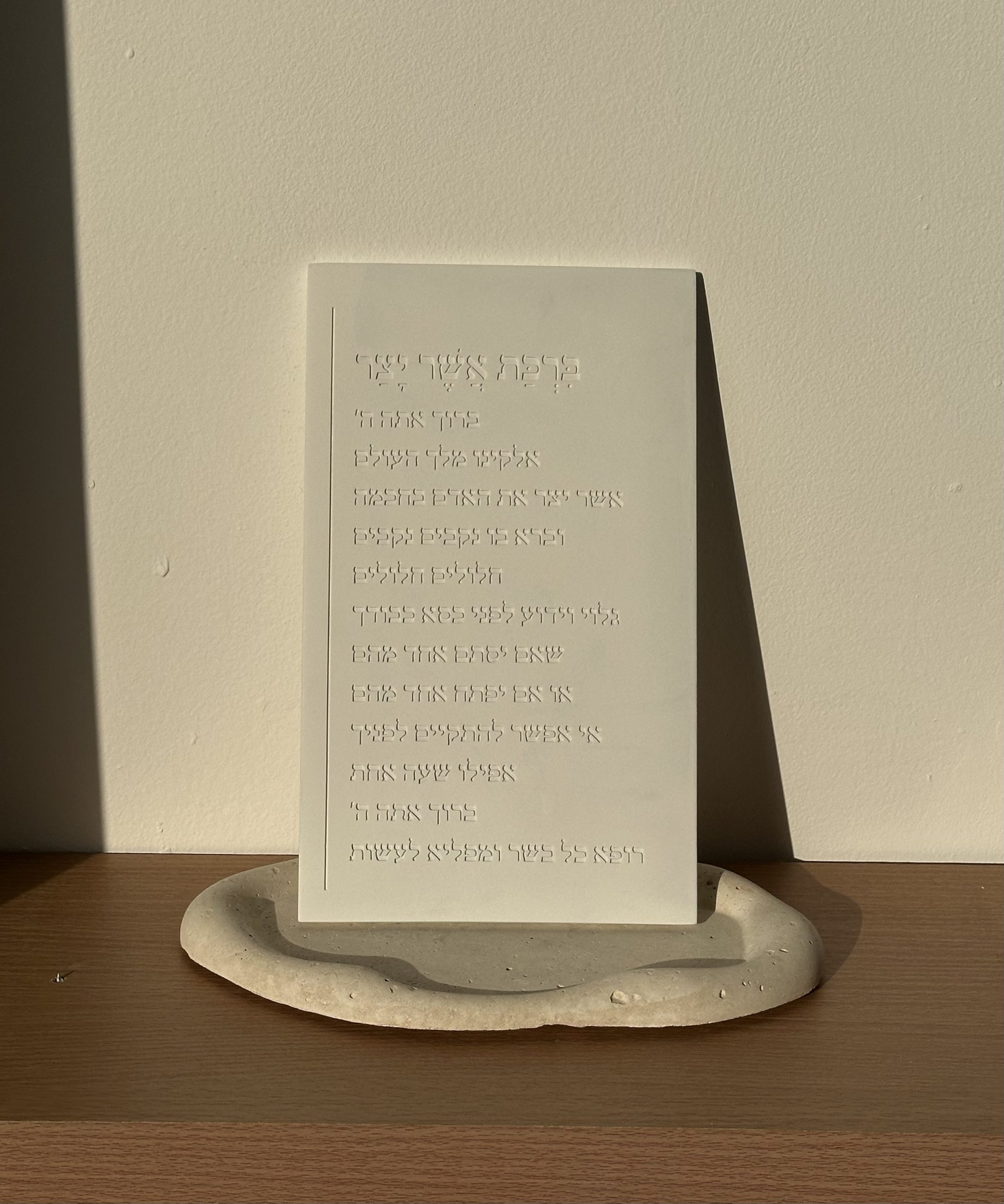 ברכת אשר יצר דגם ישר , מבטון , גוון לבן , רוחב 15 ס”מ , גובה 25 ס”מ .