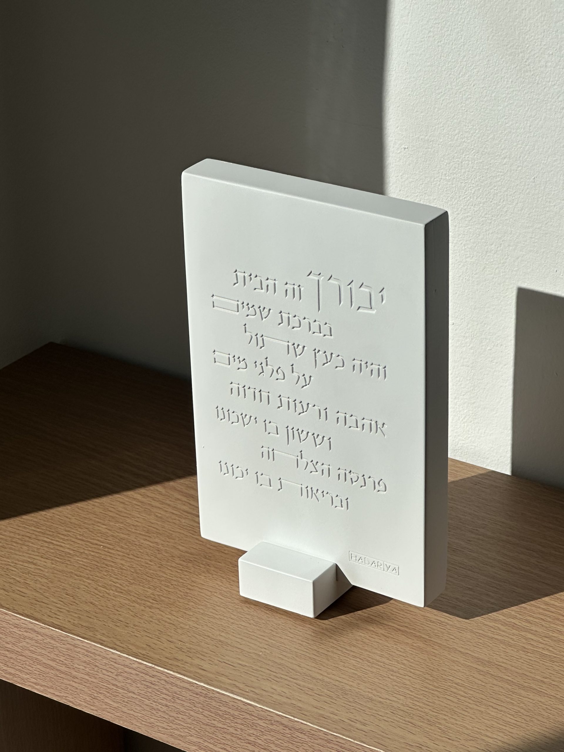 לוח מבטון איכותי עם חריטה עדינה של נוסח ״ ברכת הבית ״ .