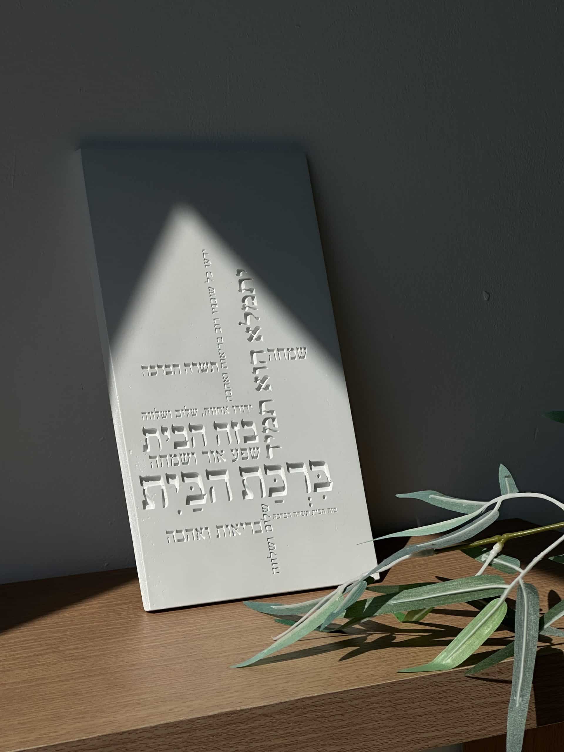 ברכת הבית דגם טופוגרפיה , מבטון , גוון לבן , רוחב 15 ס”מ , גובה 25 ס”מ .
