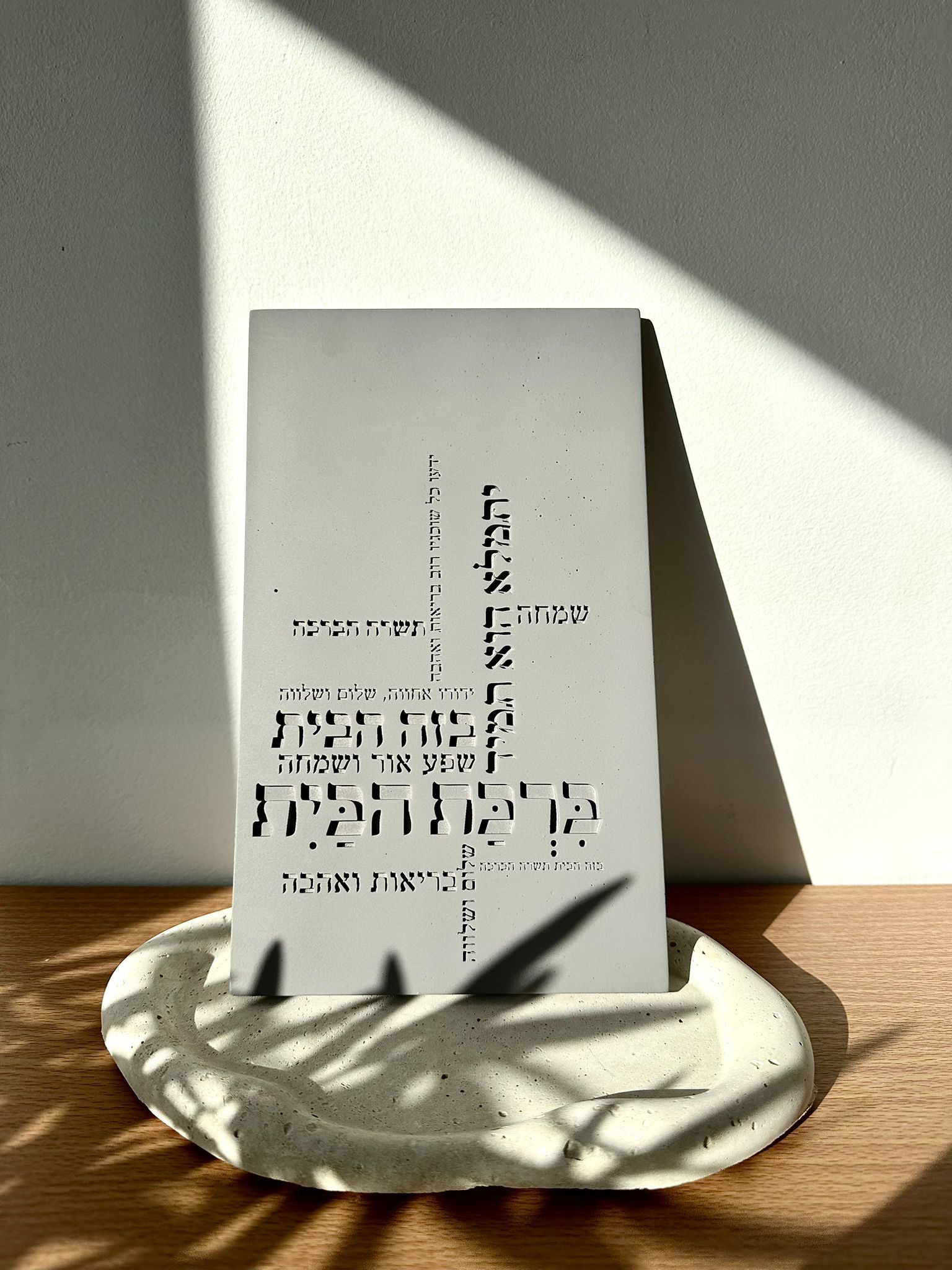 ברכת הבית דגם טופוגרפיה , מבטון , גוון בטון , רוחב 15 ס”מ , גובה 25 ס”מ .
