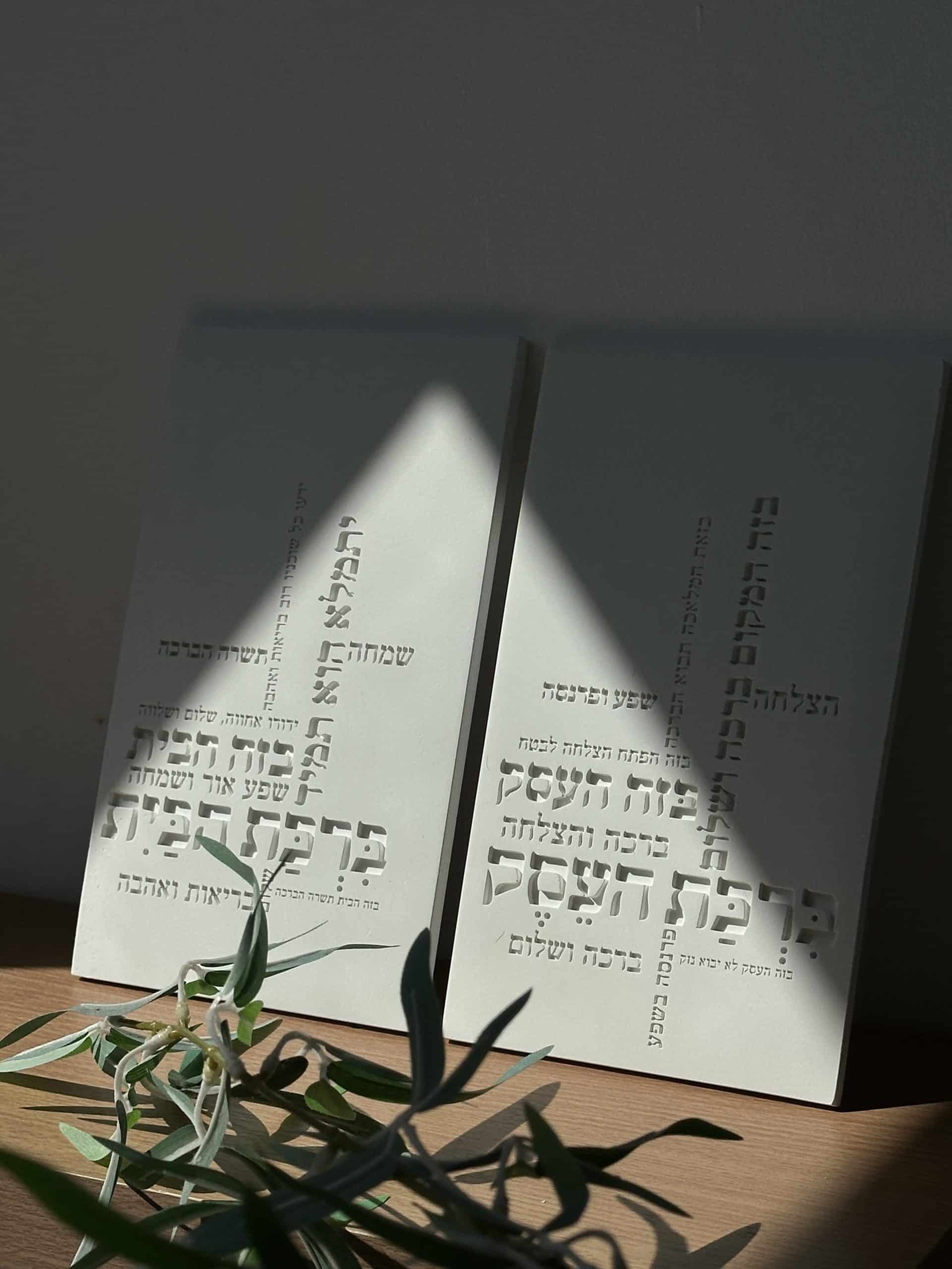ברכת העסק דגם טופוגרפיה , מבטון , גוון לבן , רוחב 15 ס”מ , גובה 25 ס”מ .