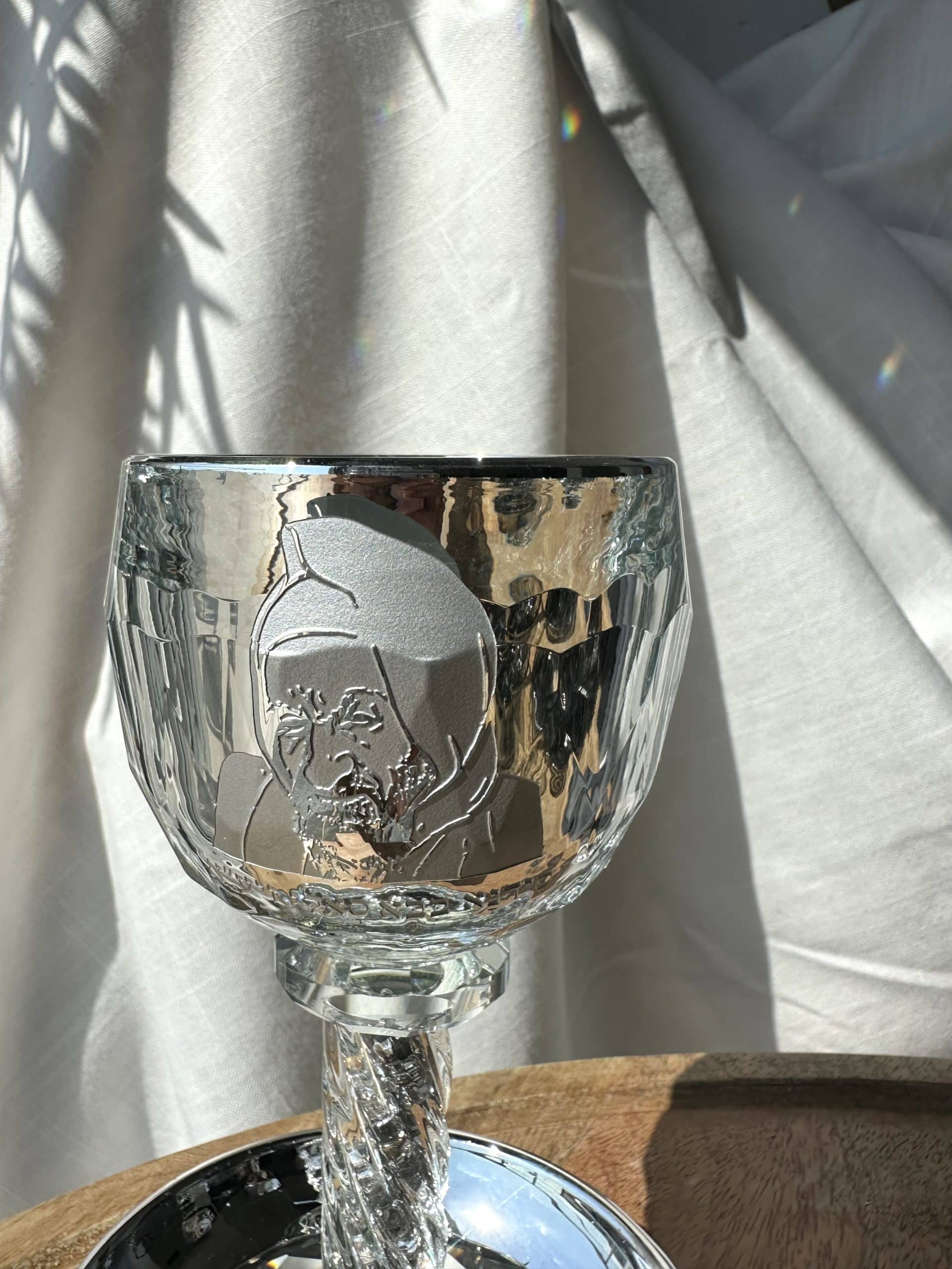 גביע קריסטל מהודר עם אבנים , גובה 16 ס”מ .