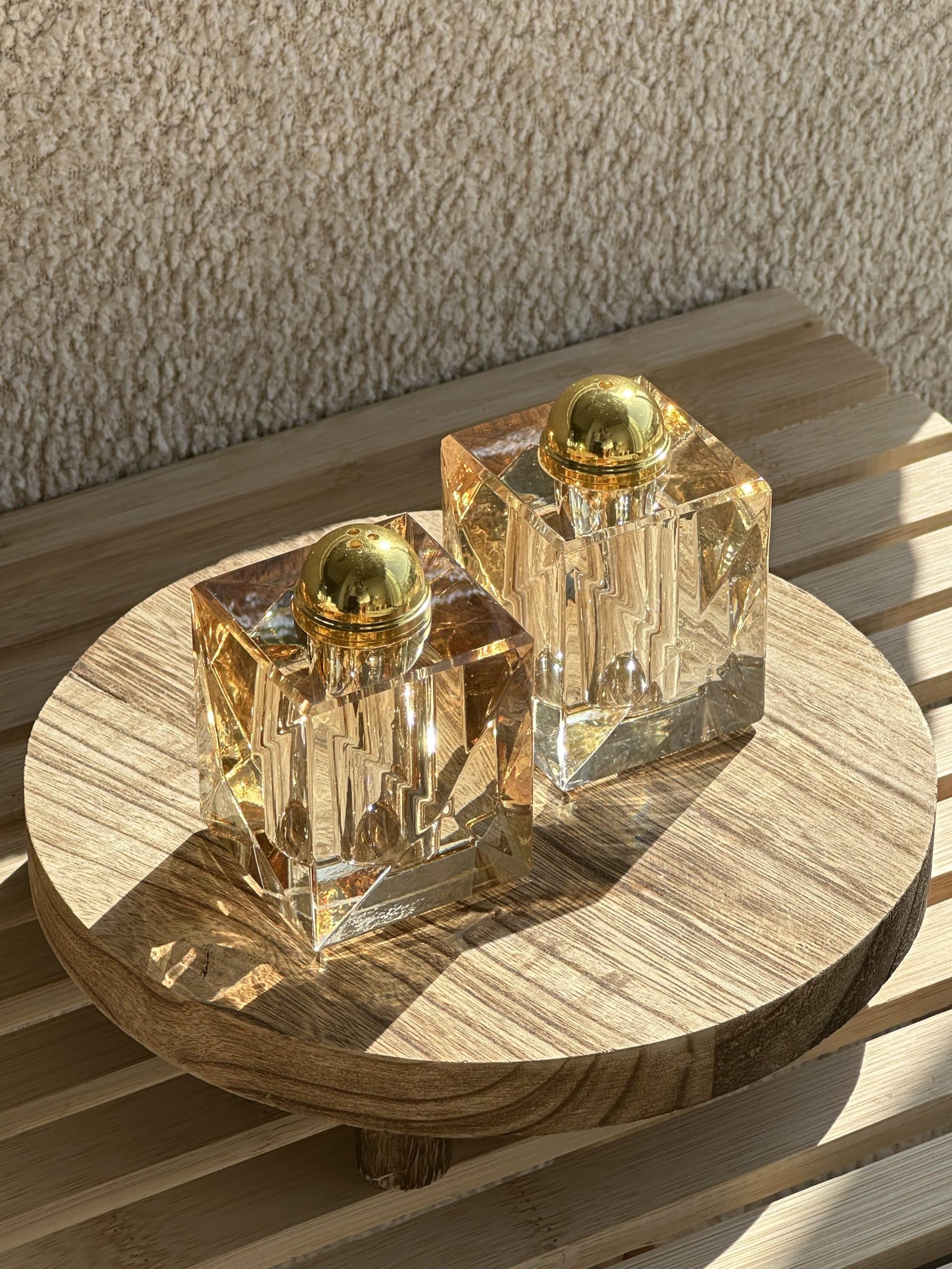 זוג מלחיות קריסטל , גוון זהב , 7 ס״מ .