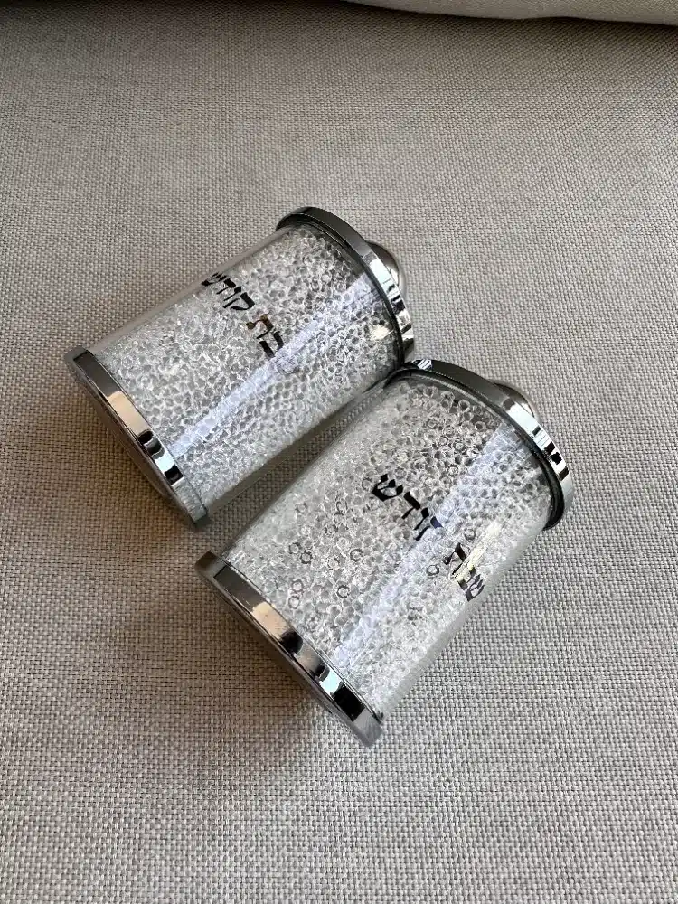 זוג מלחיות קריסטל ” שבת קודש ” עם אבנים , גובה 6 ס”מ .