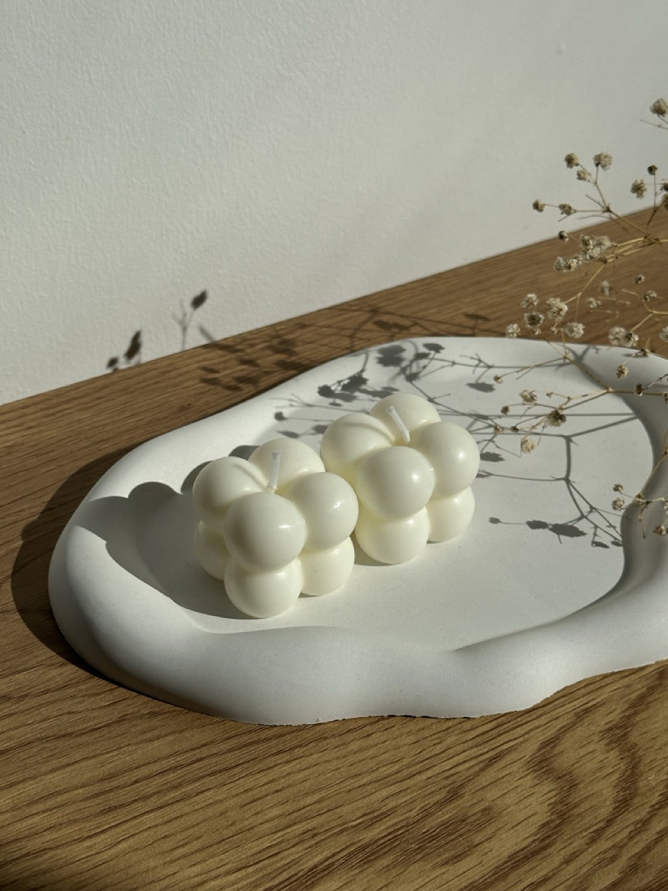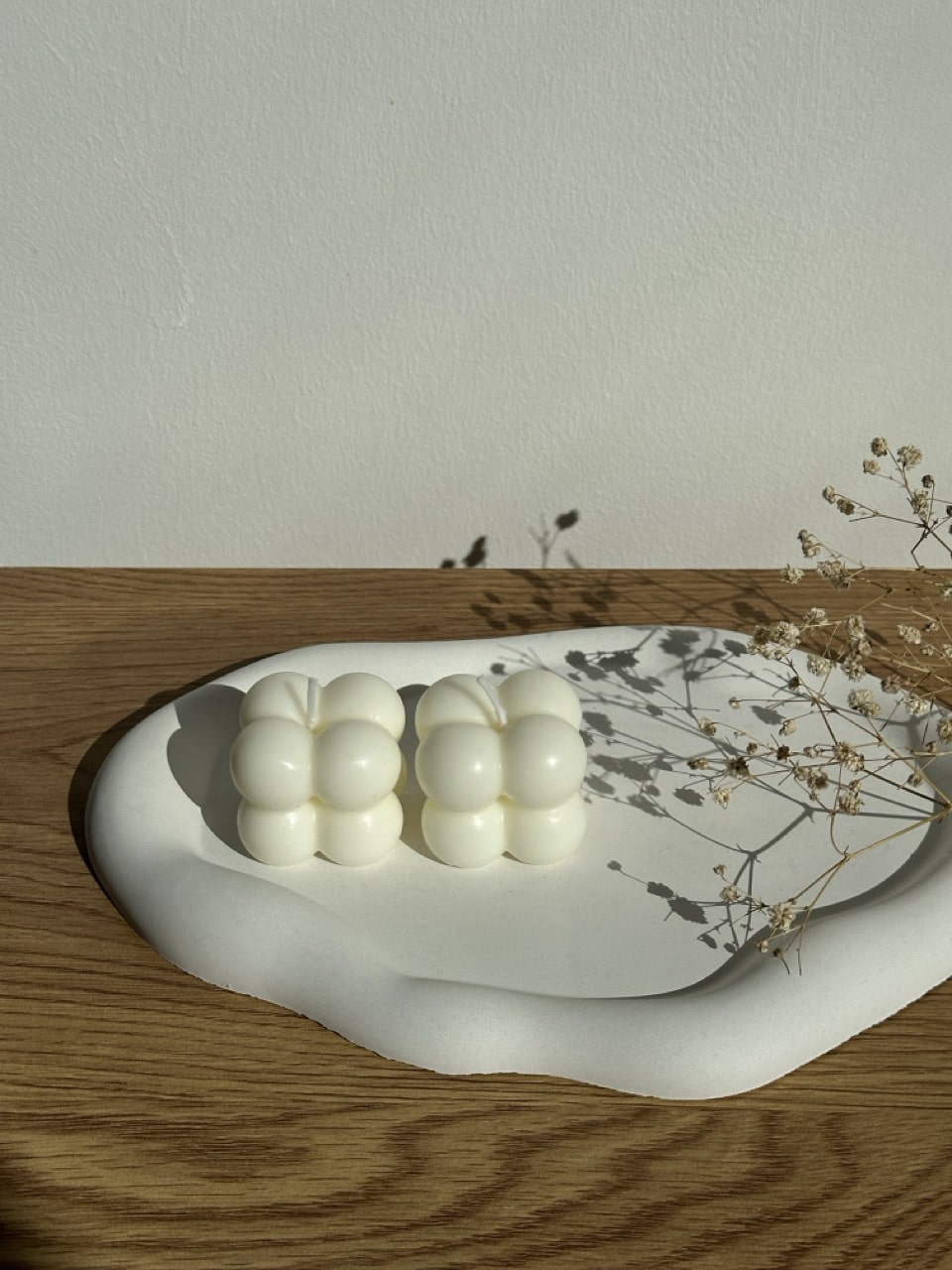זוג נרות באבלס קטנים ריחניים בגוון לבן.