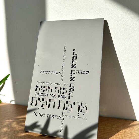 חמסה דגם טקסט , גוון בטון , רוחב 11.5 ס”מ , גובה 15 ס”מ .