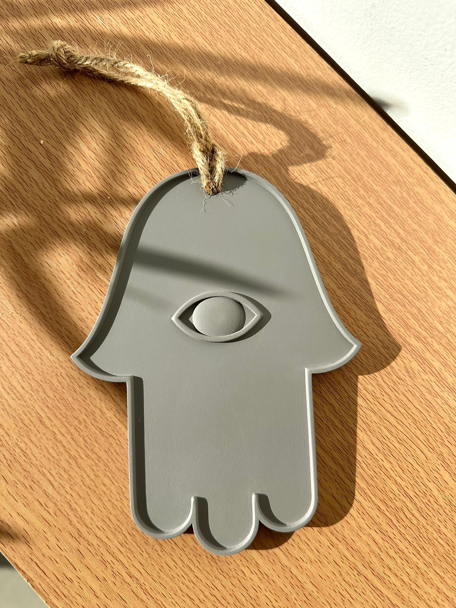 חמסה דגם עין , גוון בטון , רוחב 11.5 ס”מ , גובה 15 ס”מ .
