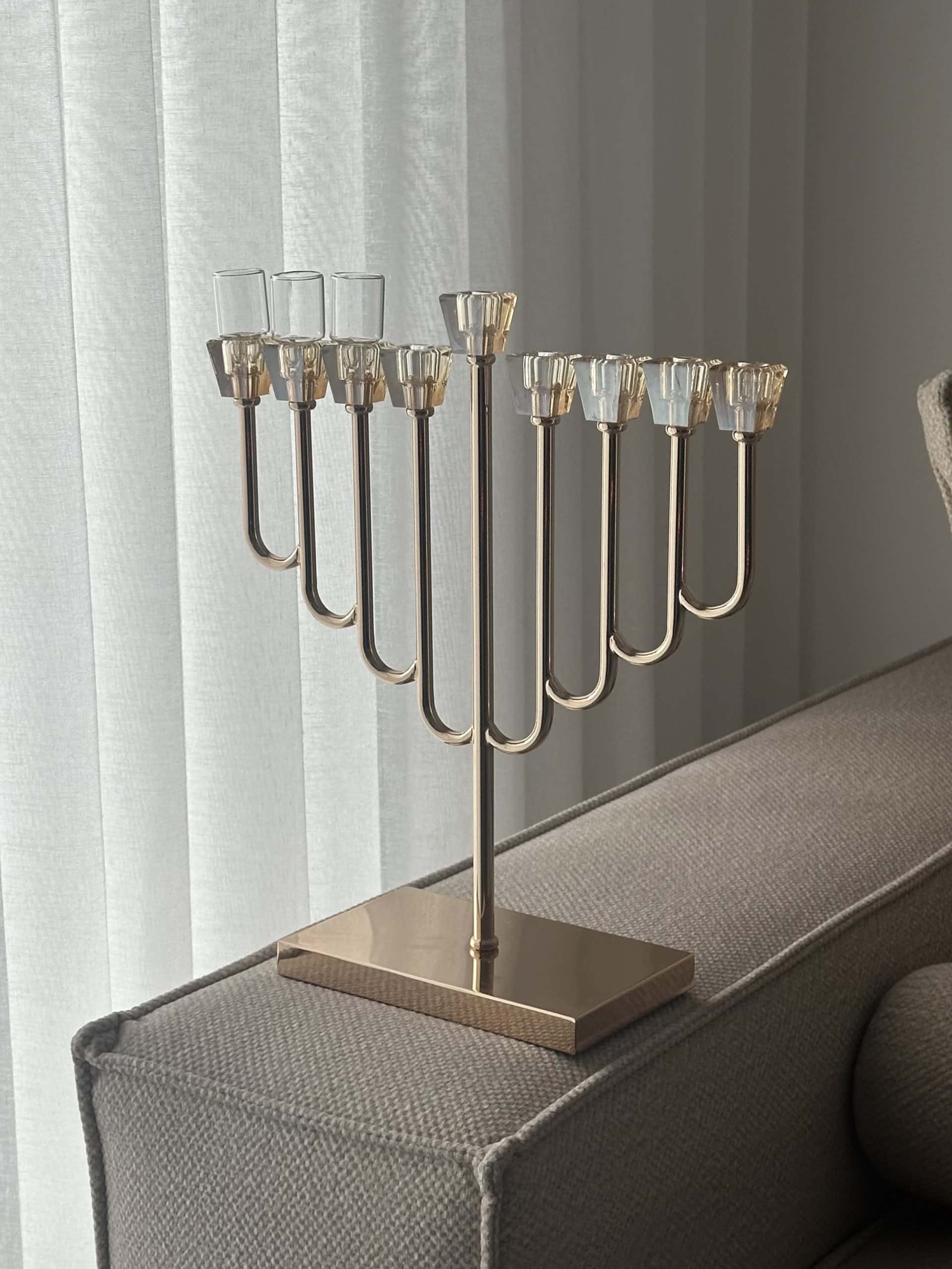 החנוכייה עשויה מחומרים איכותיים ועמידים, ומתאימה גם כמתנה מושלמת לחג החנוכה או לבית חדש.