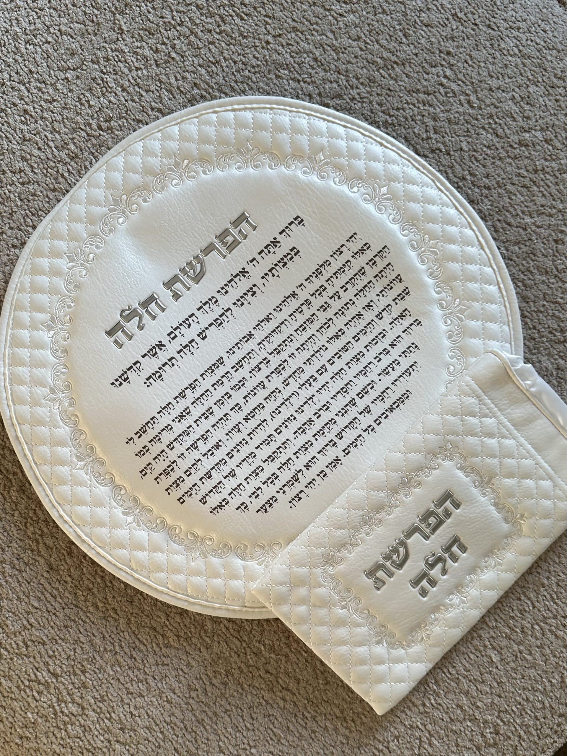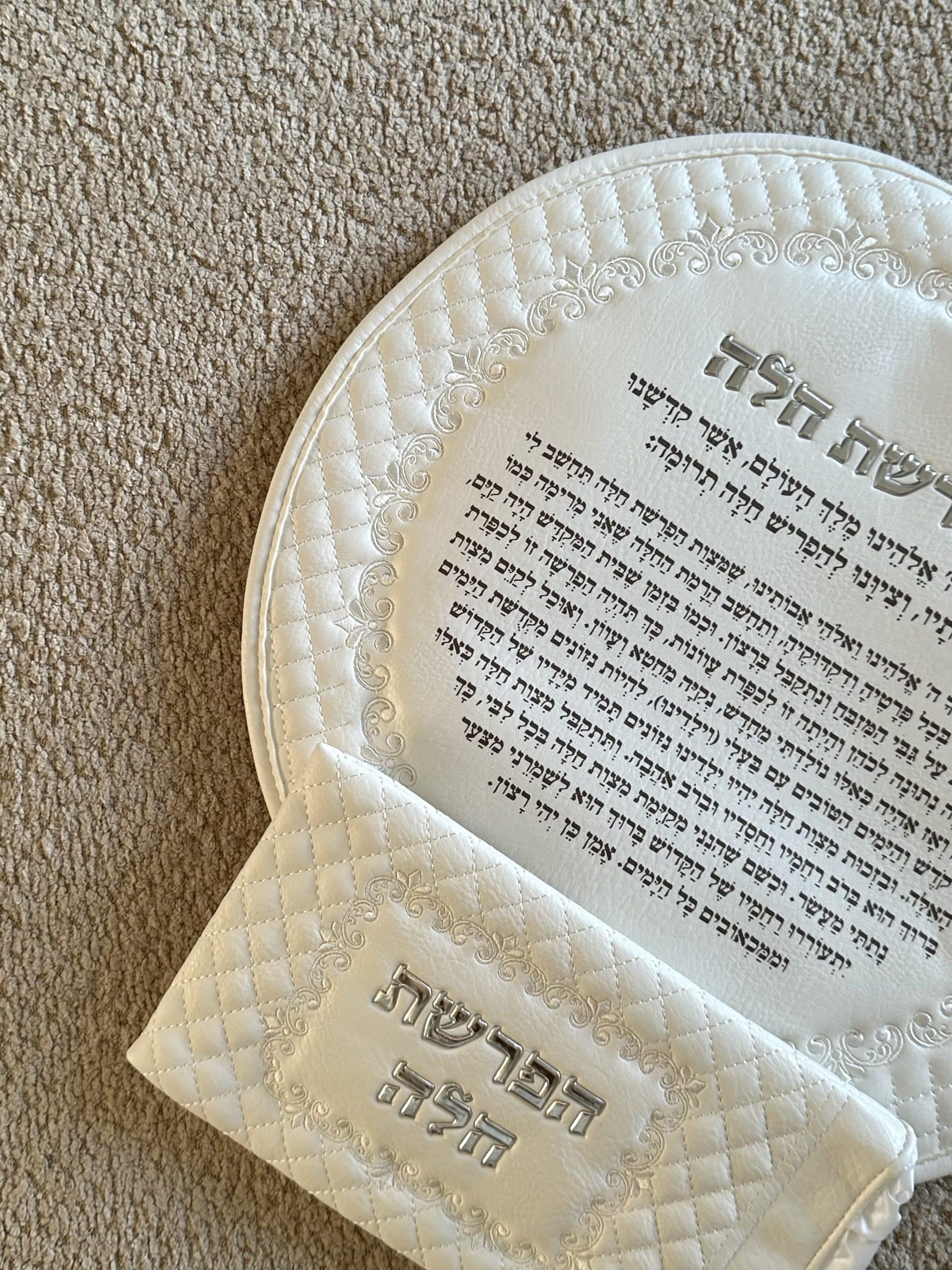 סט הפרשת חלה מהודר , אותיות בולטות , גוון לבן , 40 ס״מ .
