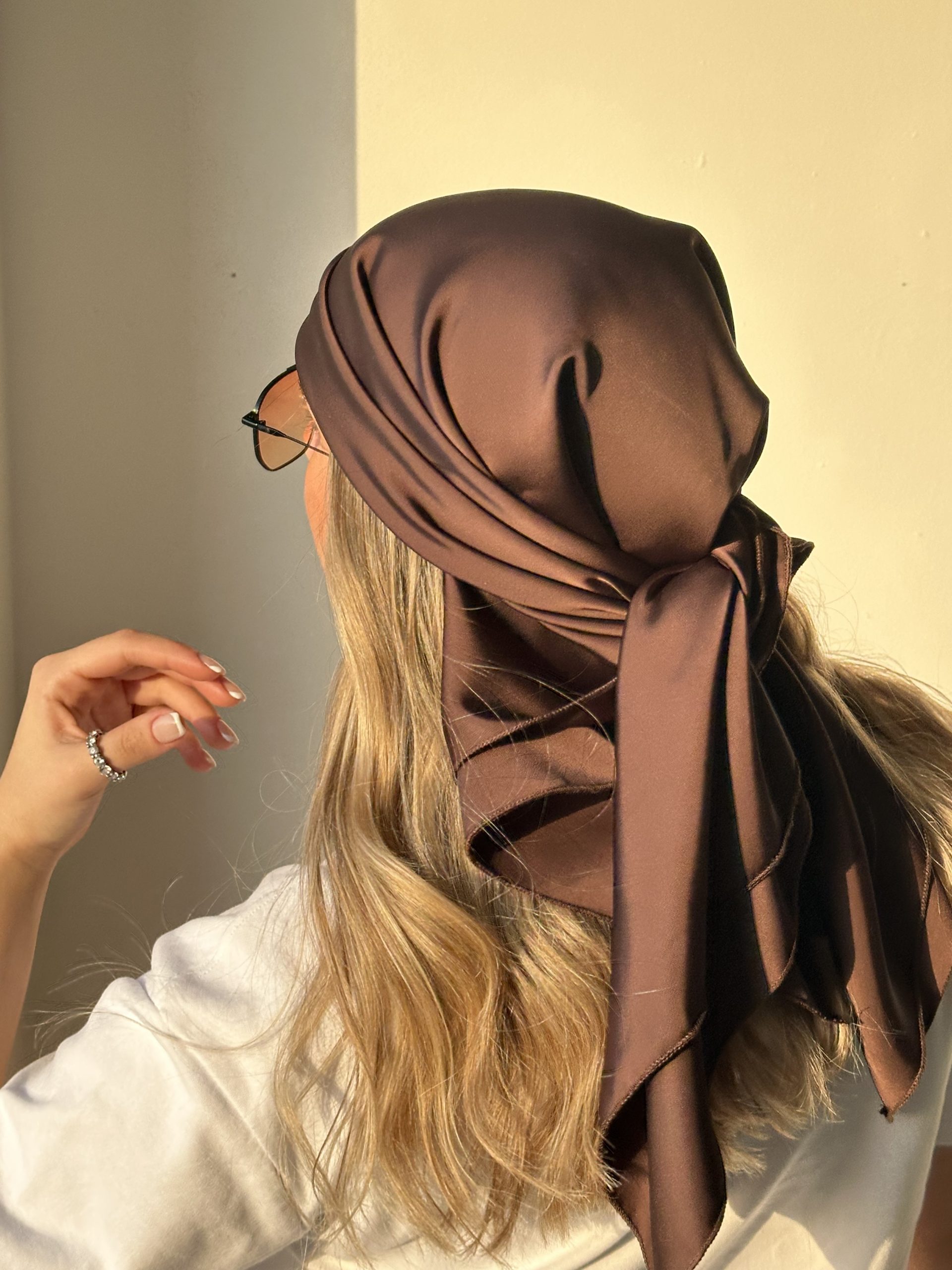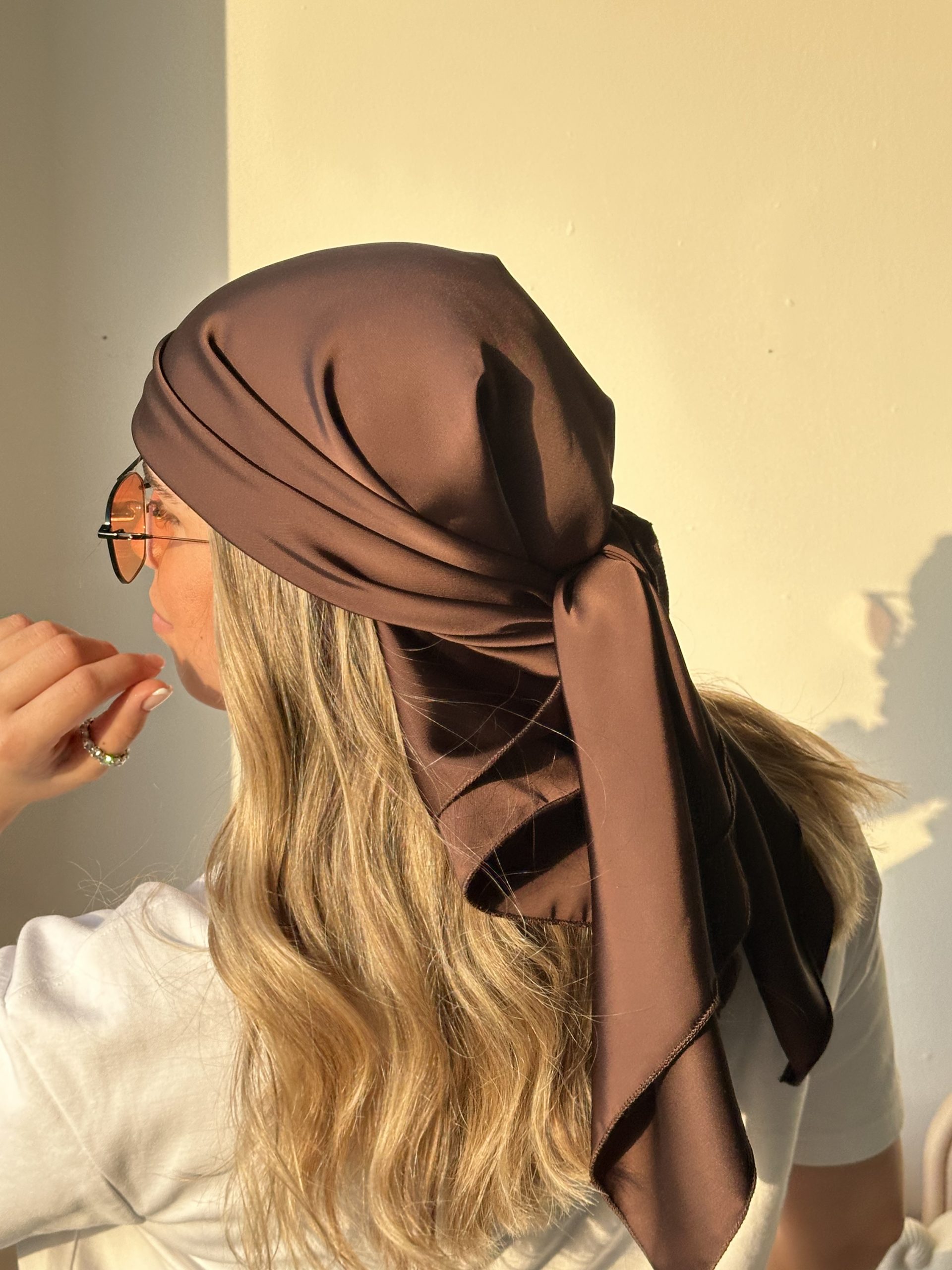 כיסוי ראש חלק , חום שוקולד – מטפחת סאטן יוקרתית.