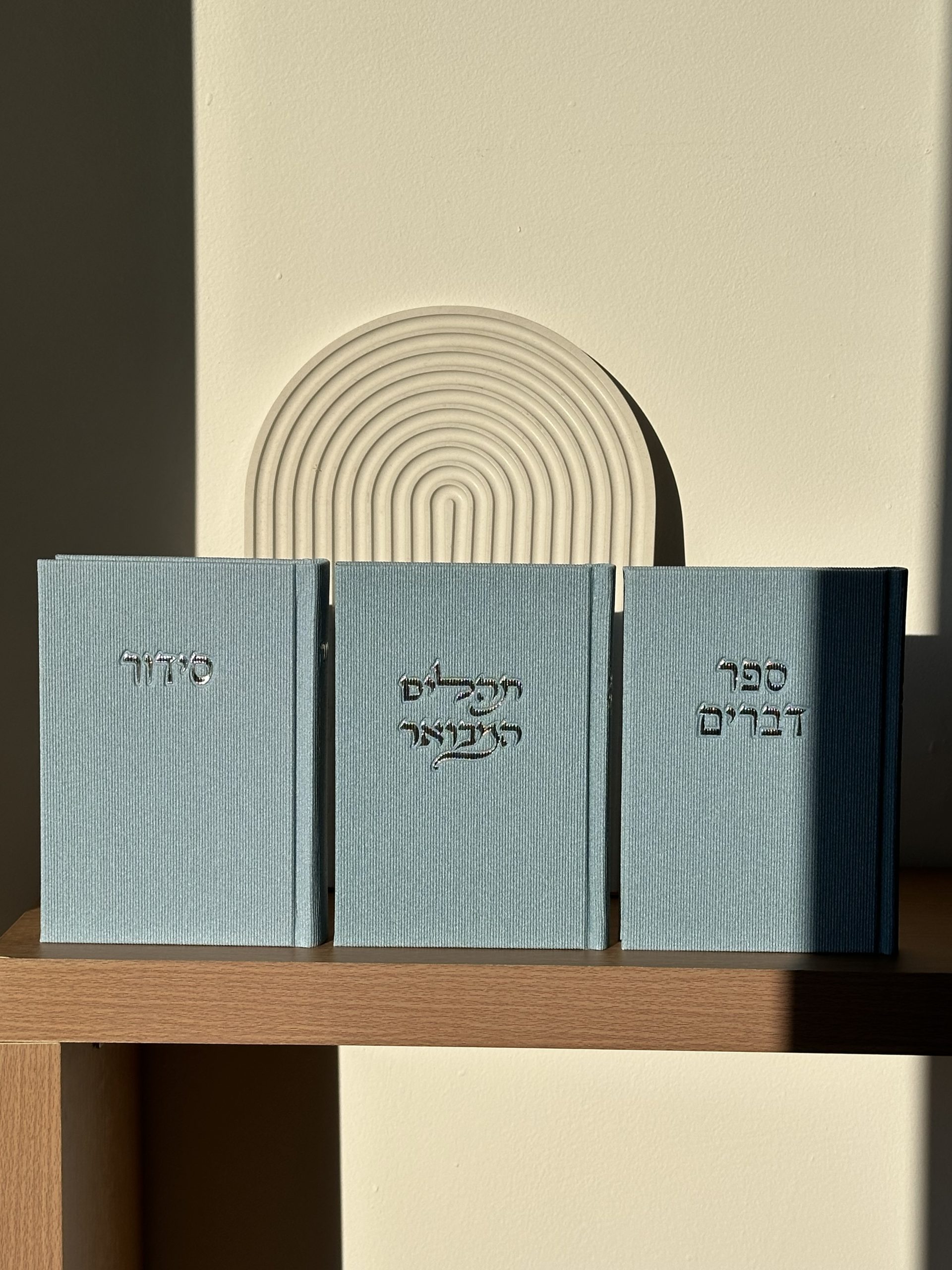 המארז כולל : סידור מהודר , ספר תהילים מבואר וספר דברים .