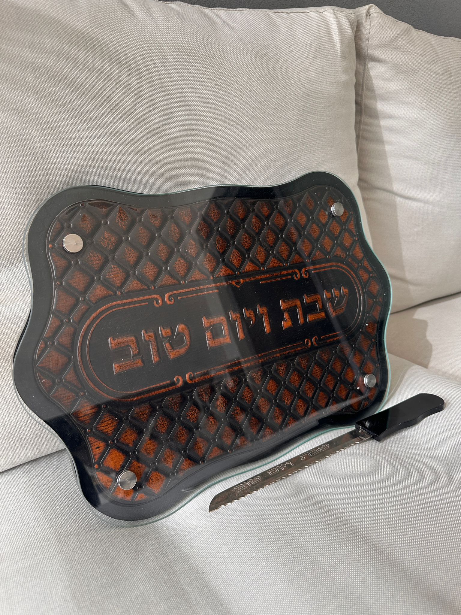 מגש חלה מהודר ” שבת ויום טוב ” + סכין תואמת