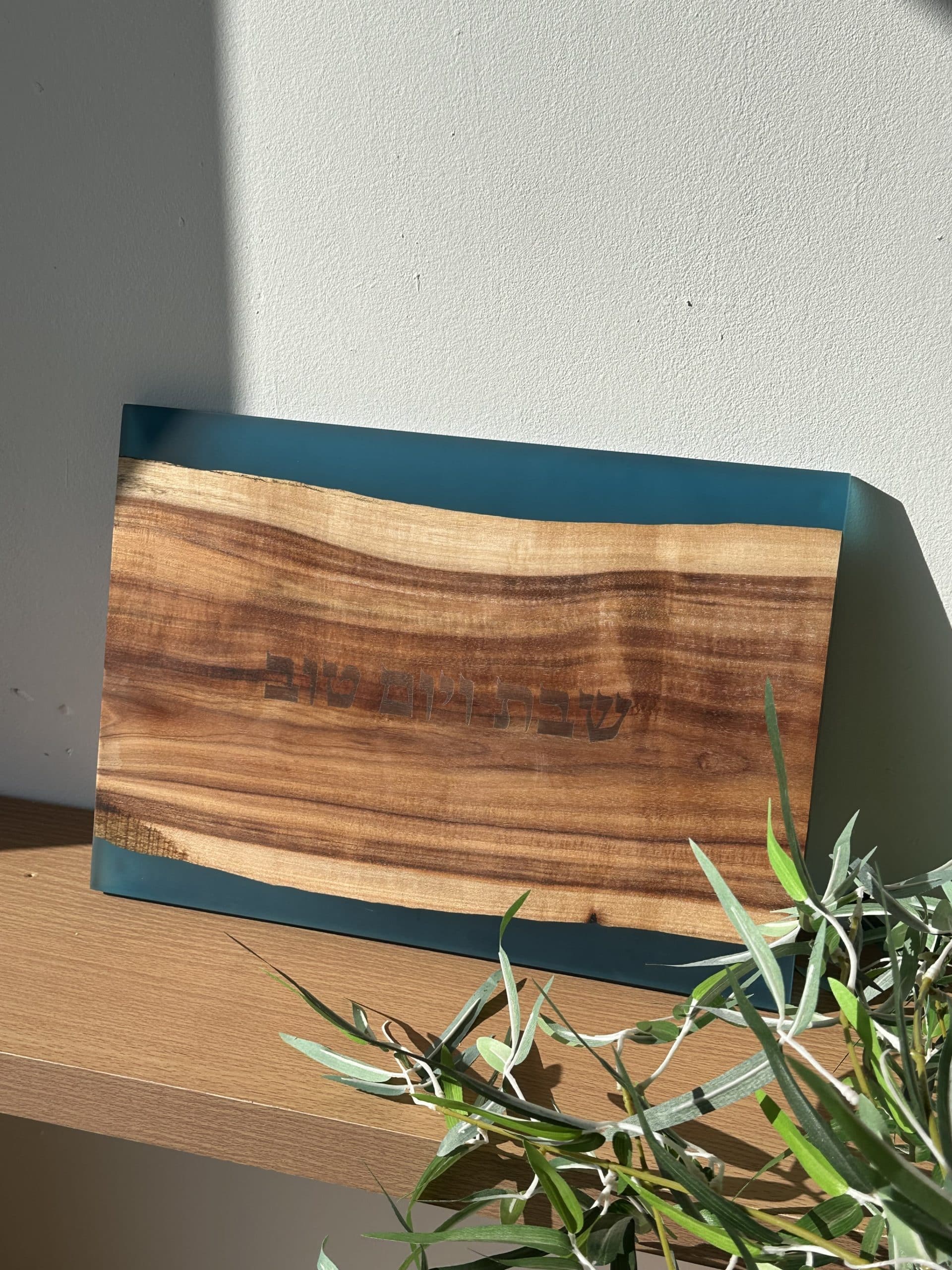 מגש חלה ” עץ אקסיה ” טבעי , גוון כחול , אורך 28 ס”מ , רוחב 41 ס”מ .