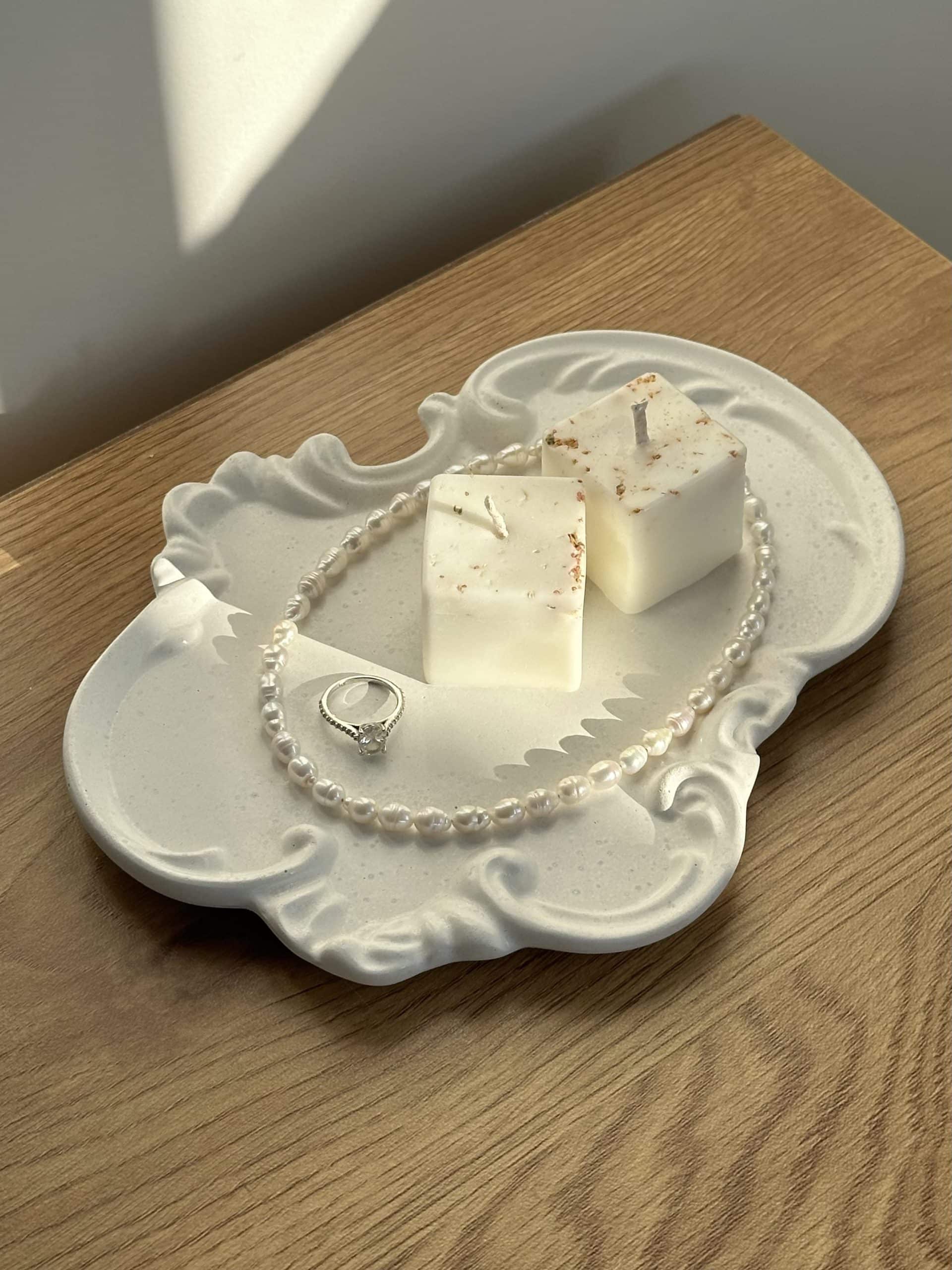 מגש מבטון – דגם רומאי , גוון בטון טבעי , אורך 20 ס״מ , רוחב 15 ס״מ , עומק 1.2 ס״מ .