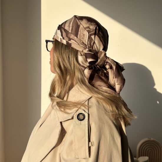 מטפחת תואמת – דגם מדבר , עשויה מבד סאטן רך, מבריק ונעים, בגזרה נשית ומדויקת.