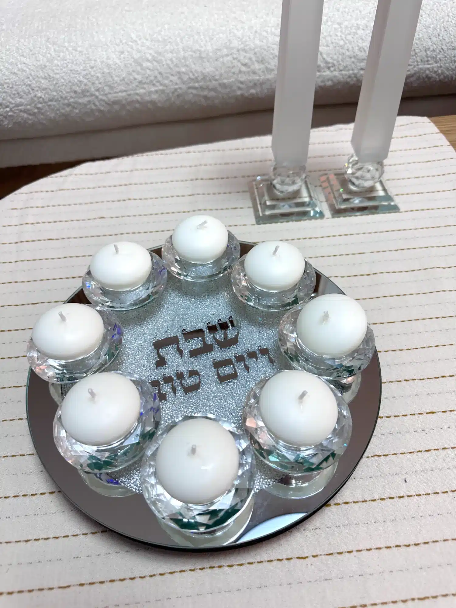 מעמד 8 קנים מקריסטל עם אבנים , 25 ס”מ .