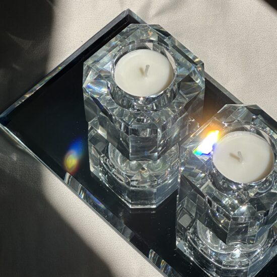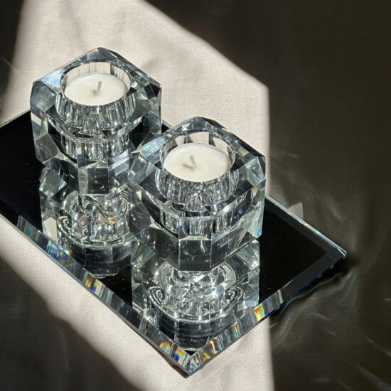 זוג פמוטי קריסטל מדורגים מרובעים , גוון שקוף