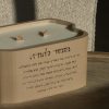 מידות – הנר מכיל קילו שעוות סויה. 20 ס״מ רוחב. 12 ס״מ אורך. גובה 11 ס״מ.