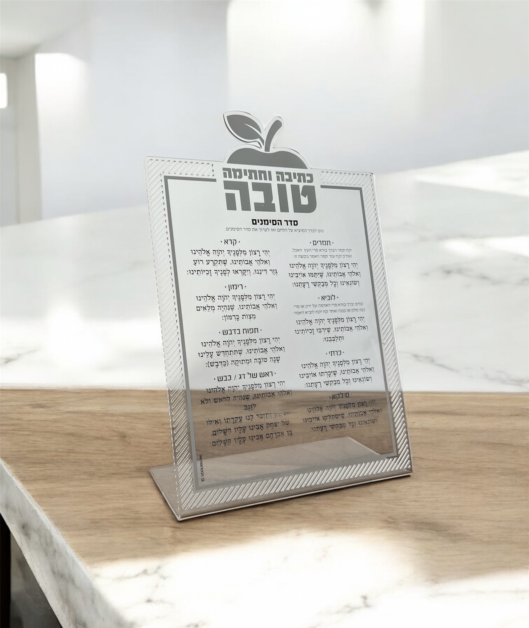 סדר סימנים ראש השנה אקרילי , גוון שקוף , גובה 25 ס״מ , רוחב 17 ס״מ .