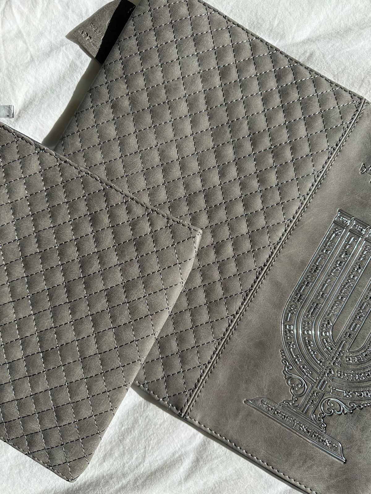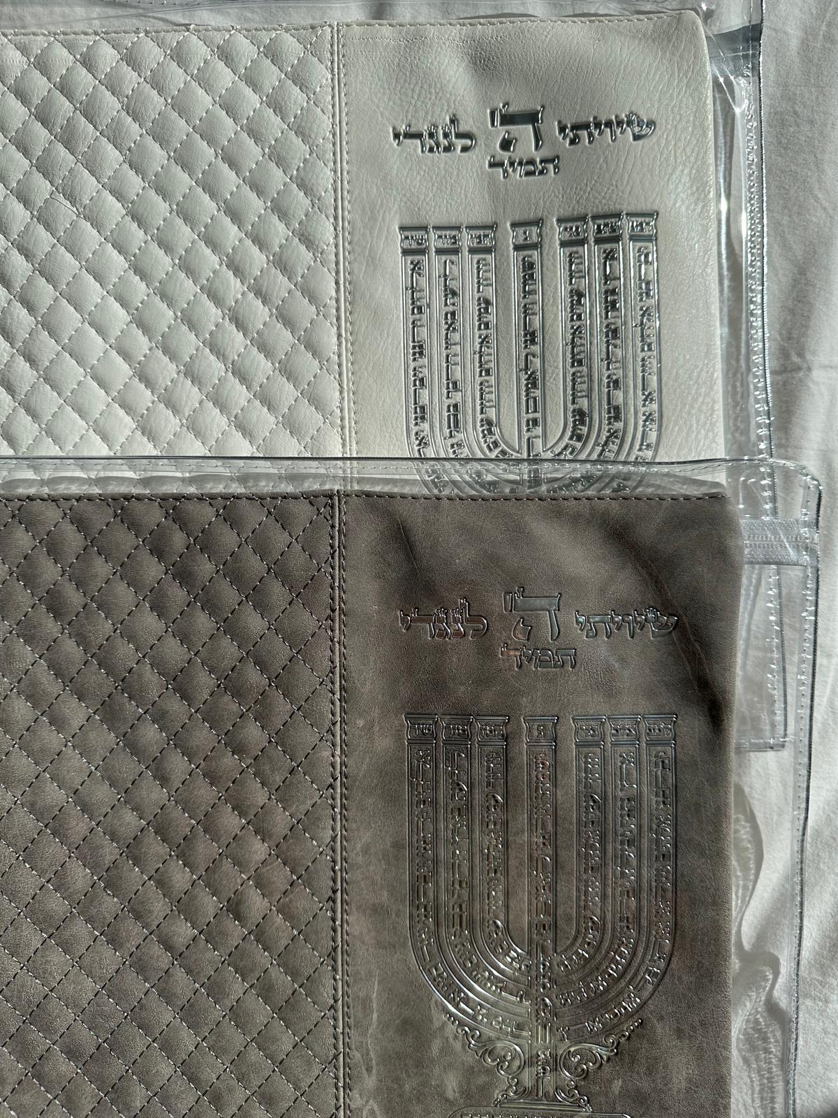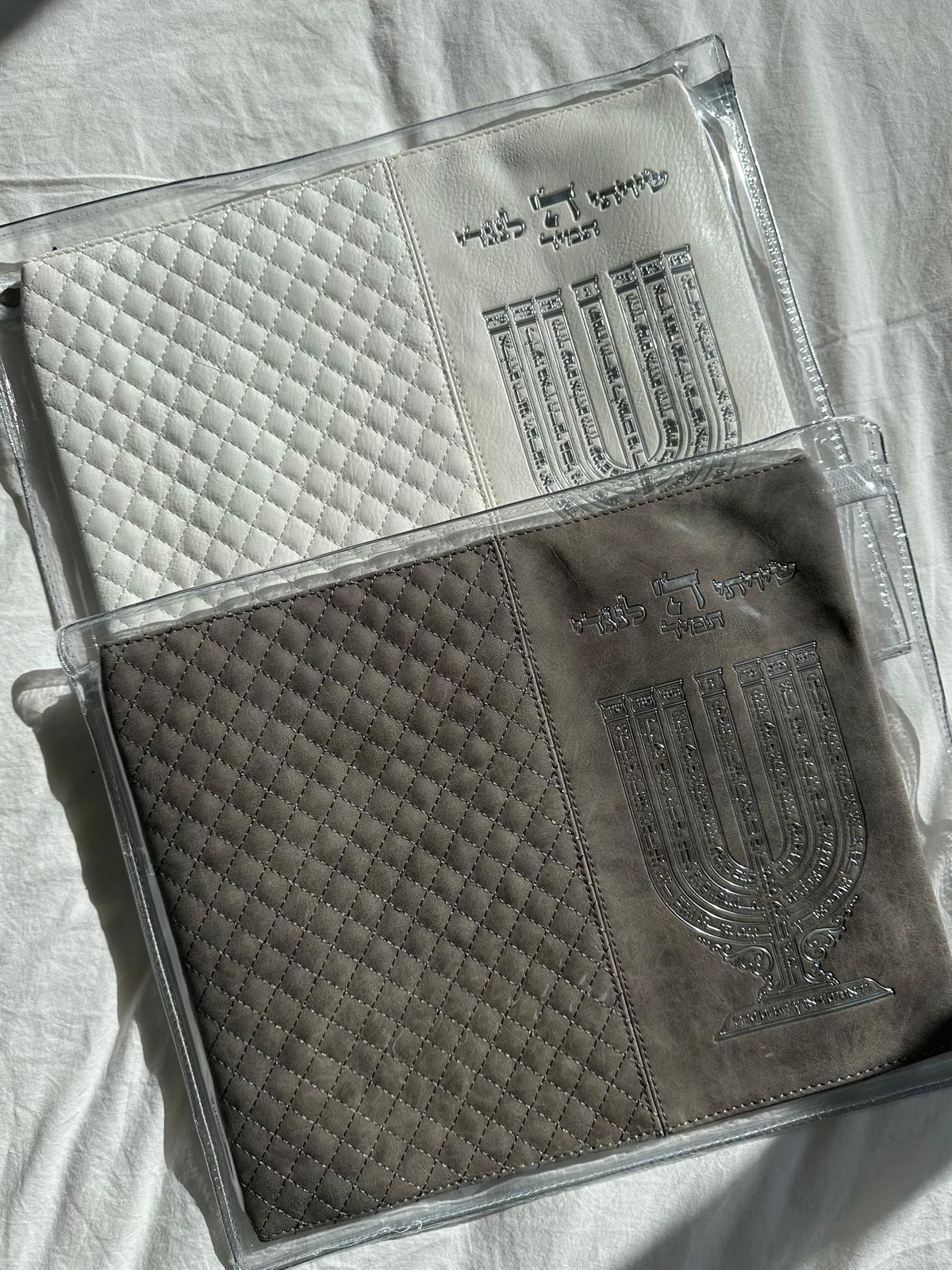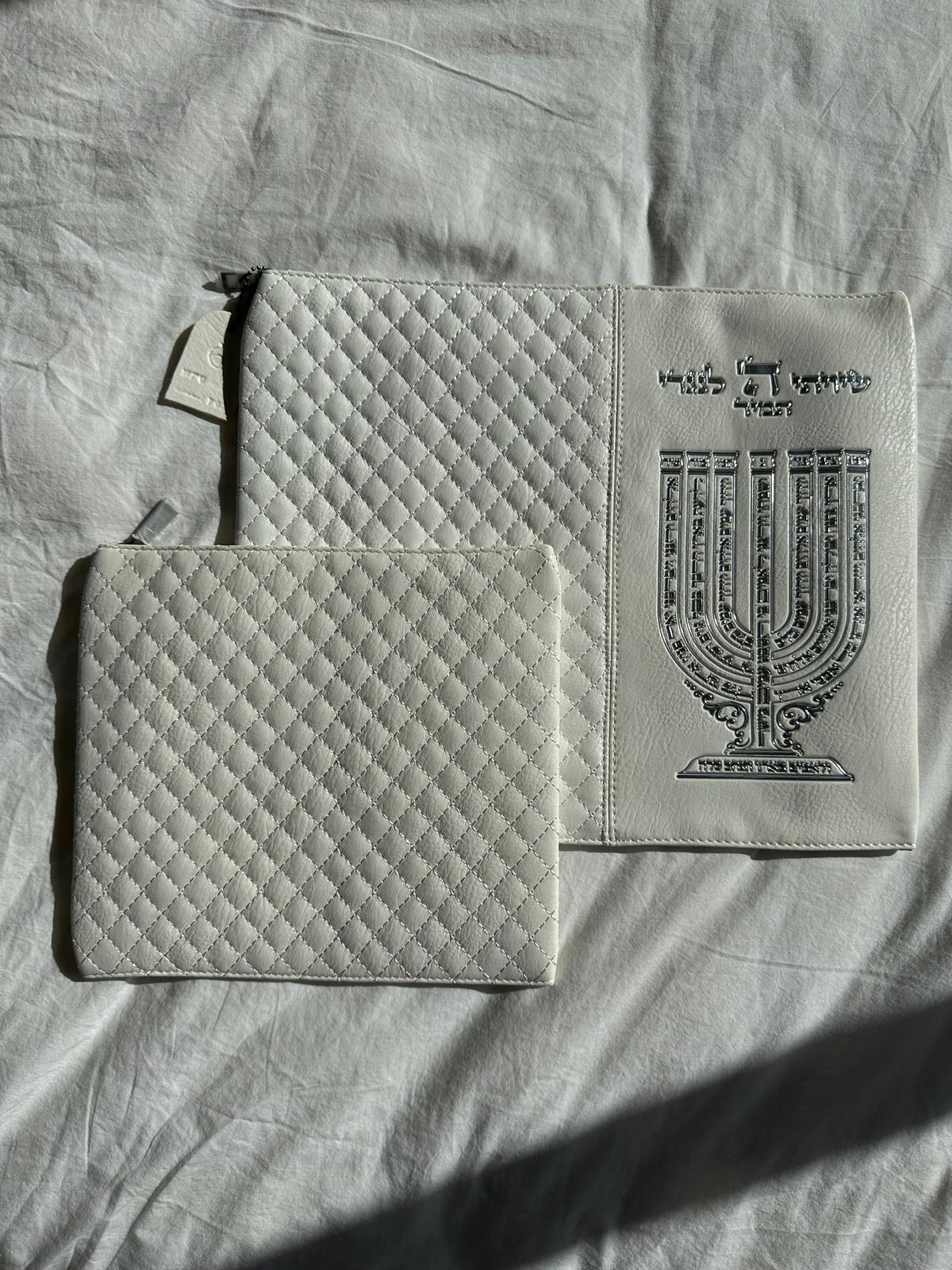 סט טלית ותפילין מפואר ” שיויתי ה’ לנגדי ” עם הבלטה , דמוי עור , אורך 38 ס”מ , רוחב 31 ס”מ .