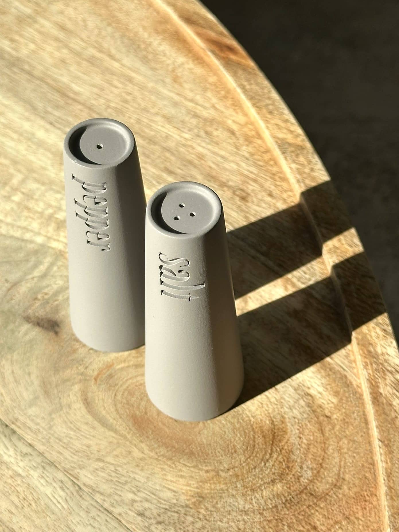 סט מלח פלפל מבטון , גוון בטון , אורך 9 ס״מ , רוחב 3.5 ס״מ .
