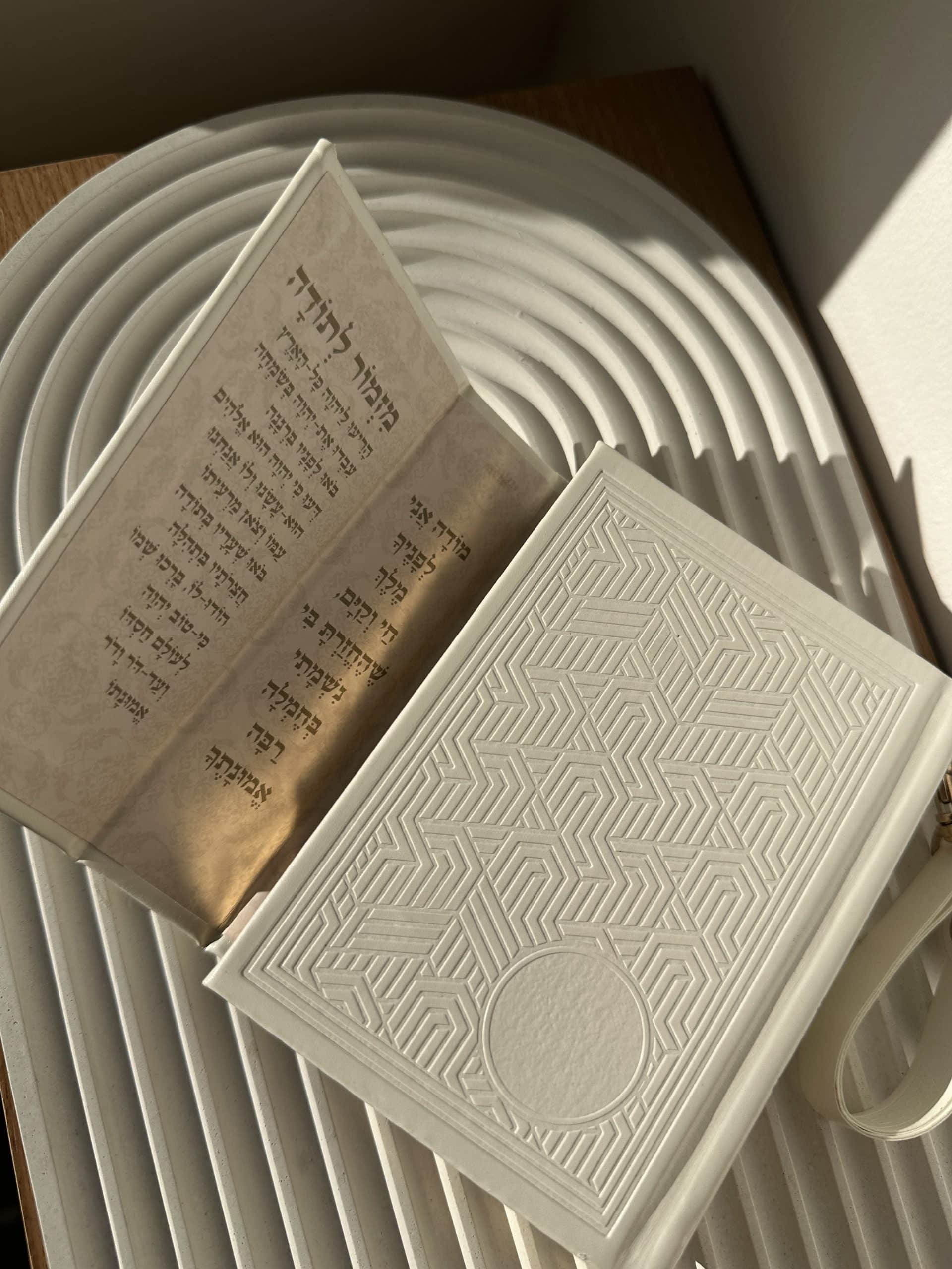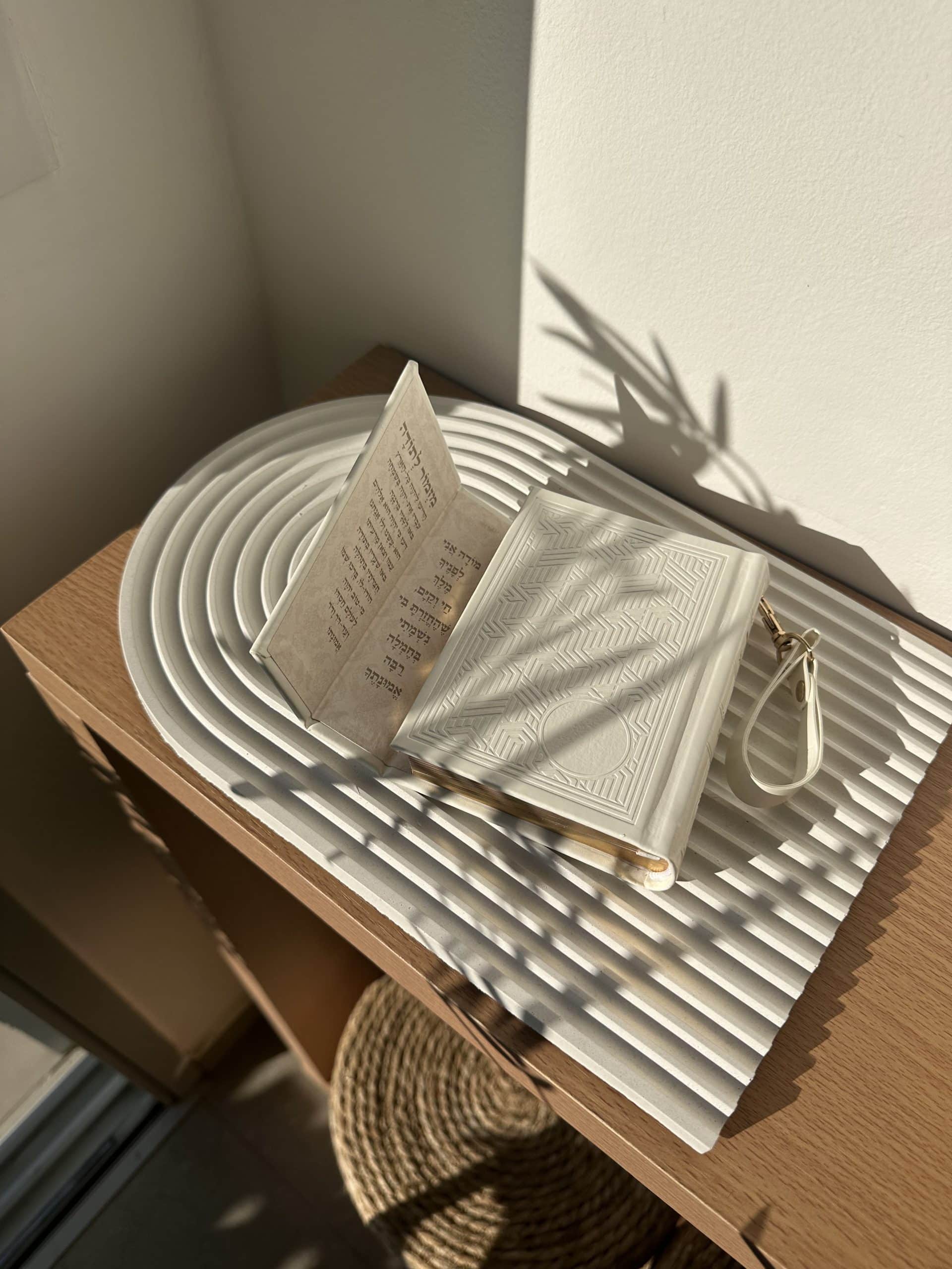 סידור לבת ישראל עם מגנט , גוון לבן עם זהב , גובה 12 ס”מ , רוחב 9 ס”מ .