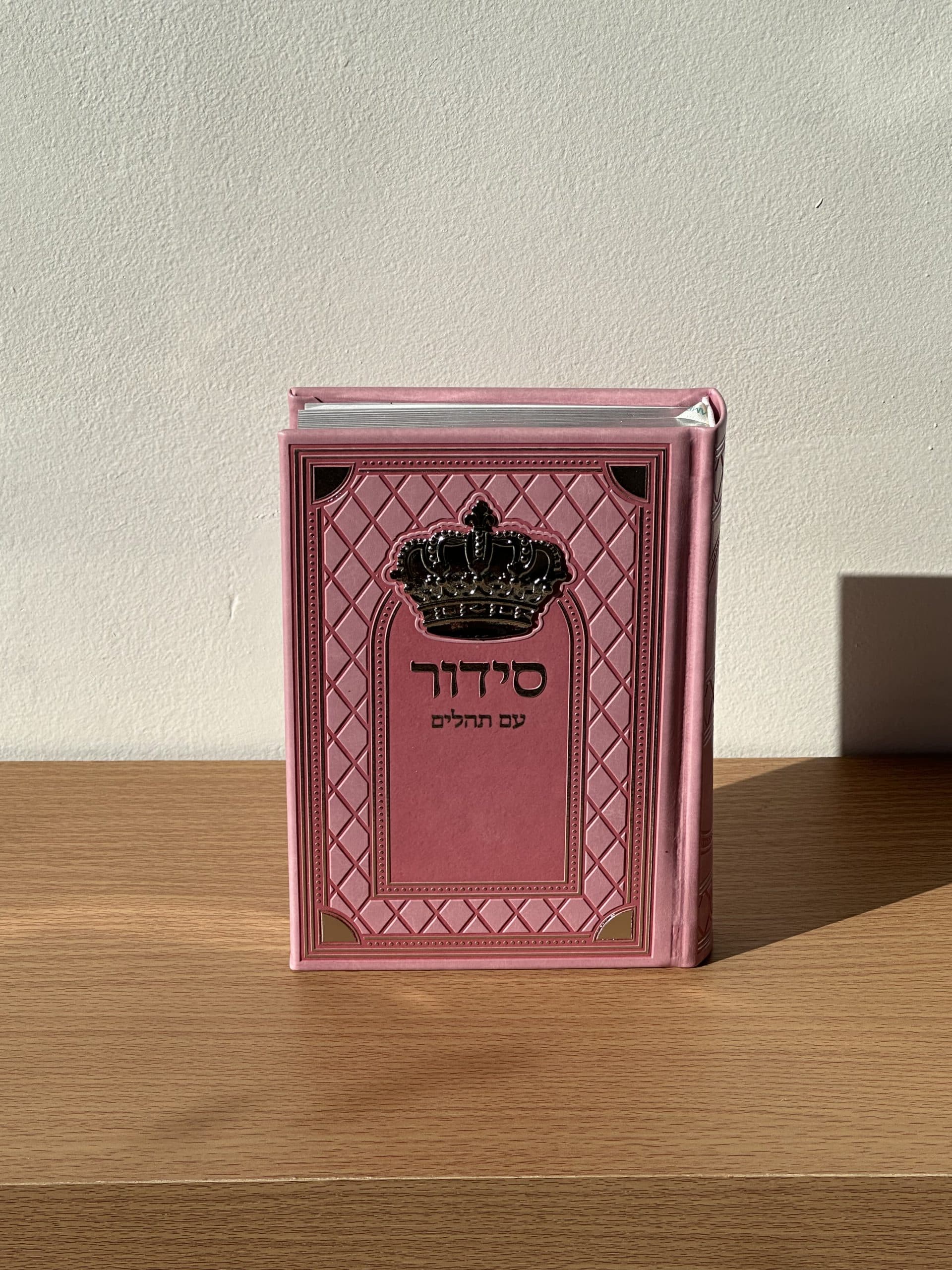 סידור ״ שומע תפילה ״ דגם כתר , גוון ורוד , גובה 17.5 ס”מ , רוחב 12.5 ס”מ .