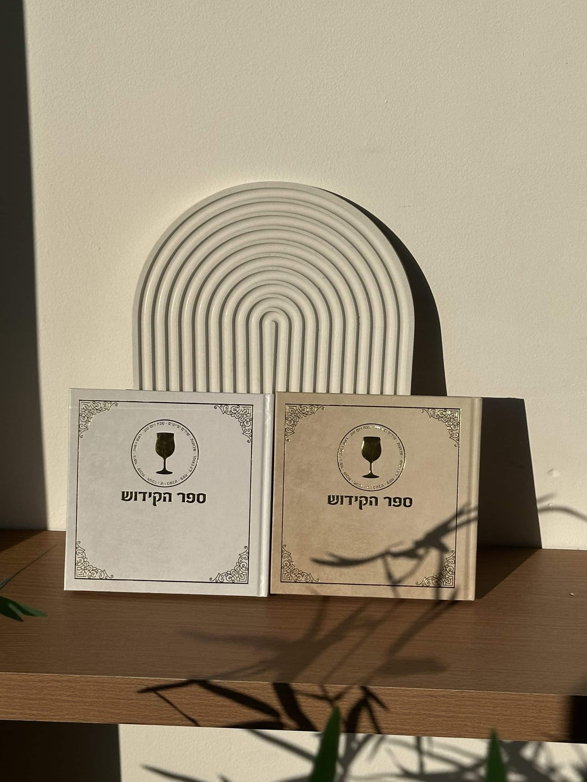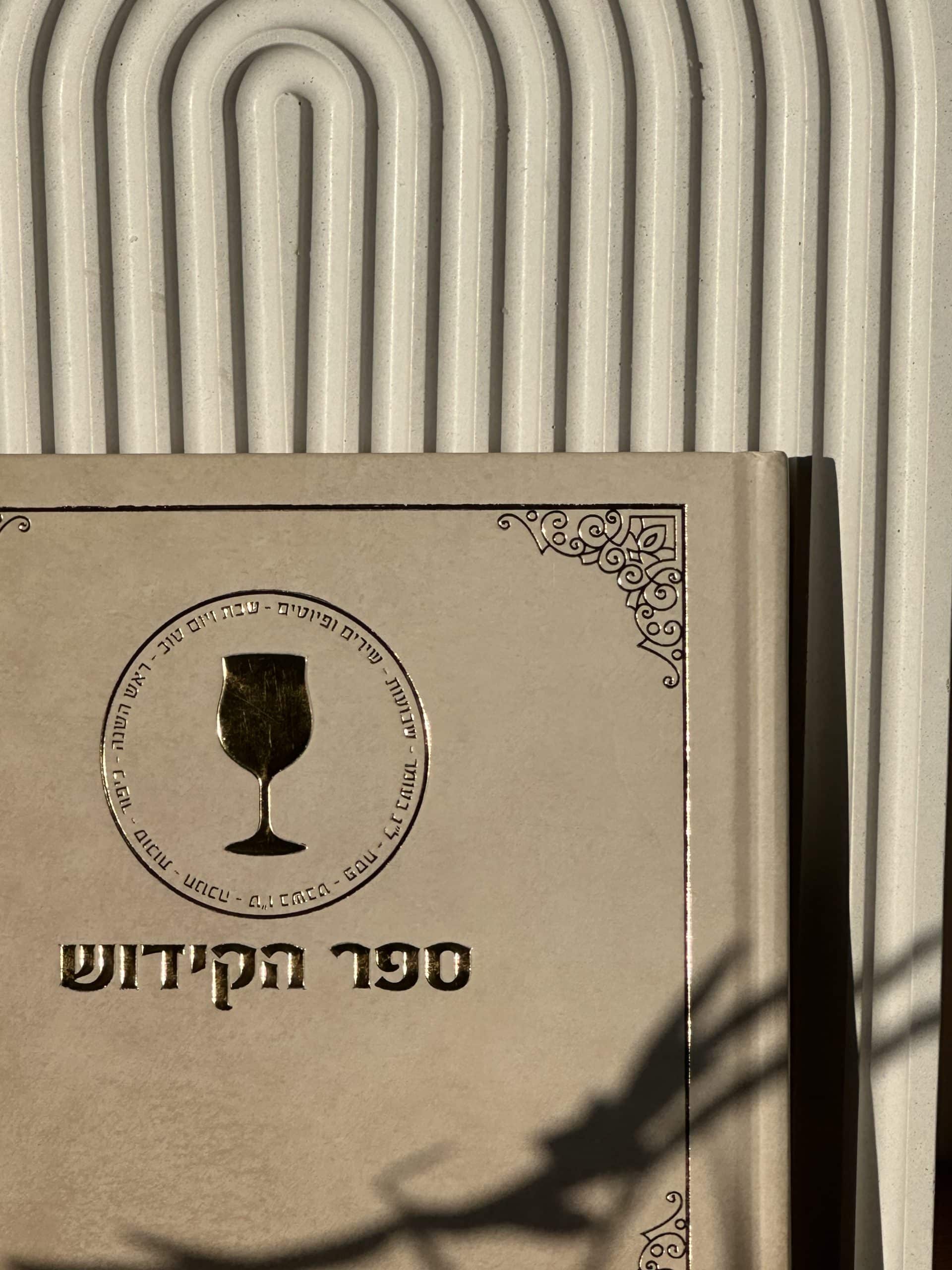 ספר הקידוש מדורג כריכה קשה, גובה 15 ס”מ , רוחב 15 ס”מ .